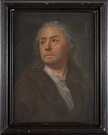Scuola del secolo XVIII Ritratto virile pastelli su carta applicata su tela, c