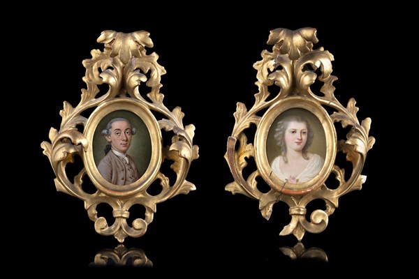 Artista del secolo XVIII Lotto composto da due miniature: Ritratto virile oli