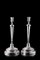 Coppia di candelieri in argento con fusto a colonna sbalzato e cesellato a fogl