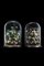 English art of the 19th century. Pair of fabric and colored shells floral compositions, contained in a shrine (h. max cm 44) (defects and losses)
