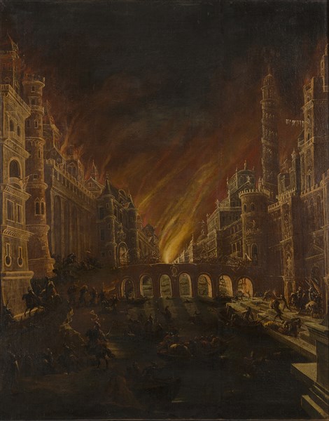 Lotto 306 | Maestro fiammingo del secolo XVII Scena di assedio Olio su tela, cm 140,5x177
