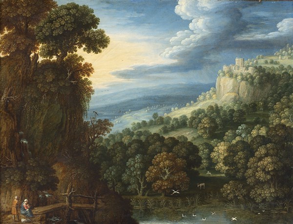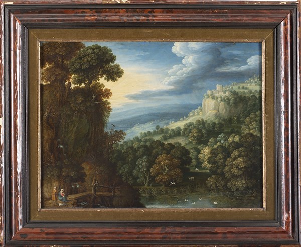 Marten Rijckaert Paesaggio boschivo con riposo durante la fuga in Egitto Olio su