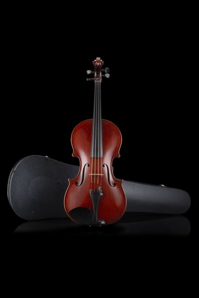Two-piece back with soft and irregular curl, varnish of a gilt red colour, good condition, label «Rodolfo Slocovich / Fatto 1993. Zagabria.» and another label «DIPLOMATO / PRESSO LA SCUOLA INTERNAZIONALE / DI LIUTERIA DI CREMONA», fire stamps «R. SLOCOVICH» (length of the back mm 405) With a shaped case
