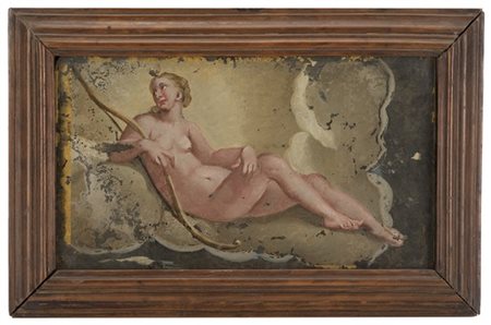 Scuola del secolo XVII "Diana" verre-peint (cm 11x19,5) In cornice in legno (difetti)