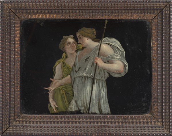 Scuola del secolo XVII "Figure classiche" coppia di verre-peint (cm 11x14,5) In