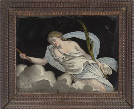 Scuola del secolo XVII "Figure classiche" coppia di verre-peint (cm 11x14,5) In cornici guilloché (difetti)