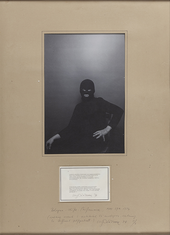Certificate of authenticity by Rosanna Chiessi of Pari & Dispari Reggio Emilia as a result of the performance held at the Pari & Dispari stand during Bologna Arte Fiera in 1976