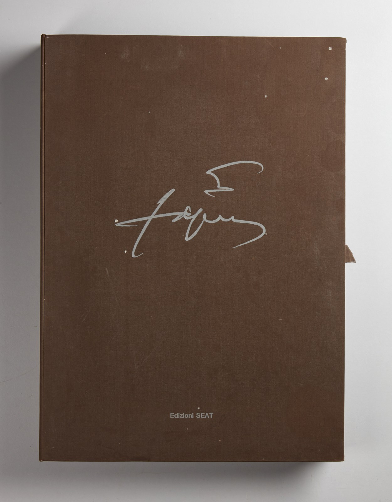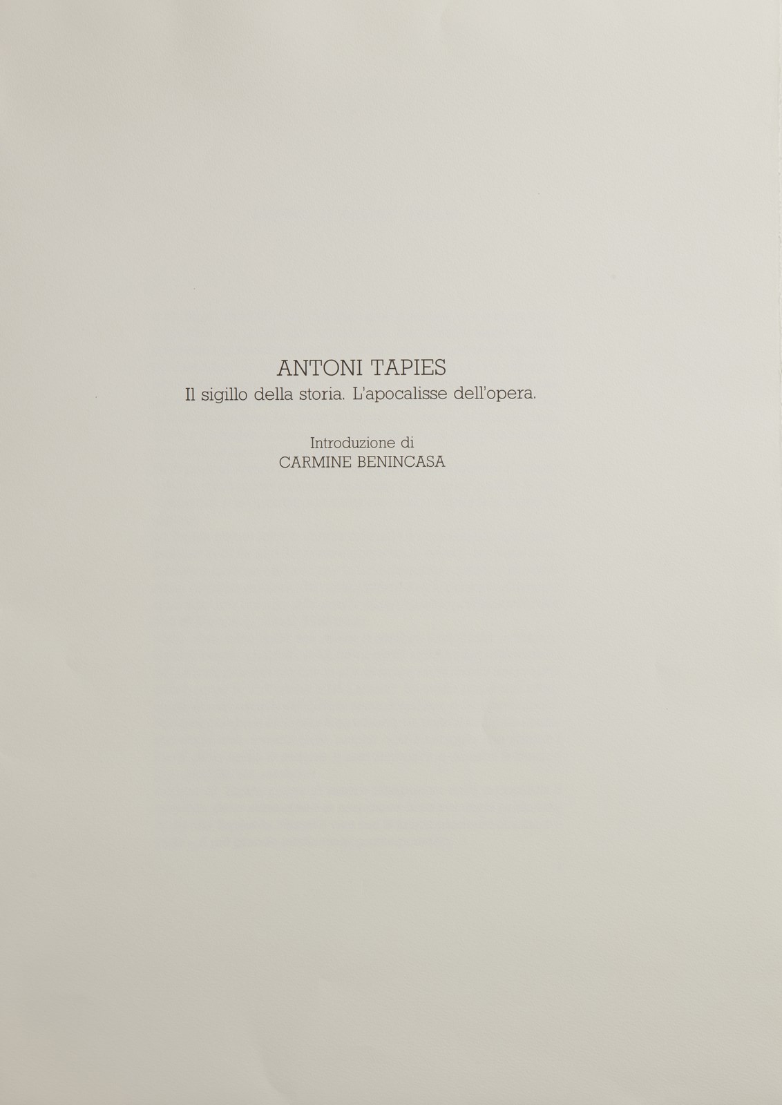 TAPIES ANTONI (1923 - 2012) Il sigillo della storia, L'apocalisse dell'opera. 1982. Libro d'arte. Cm 37,00 x 52,00. Es.458. Quest'opera riprodotta in 2000 esemplari è stata realizzata a cura di Carmine Benincasa. Stampe offset. Carta Miliani di Fabriano. Stampatore Ilte, Giugno, 1982. Lievi difetti.