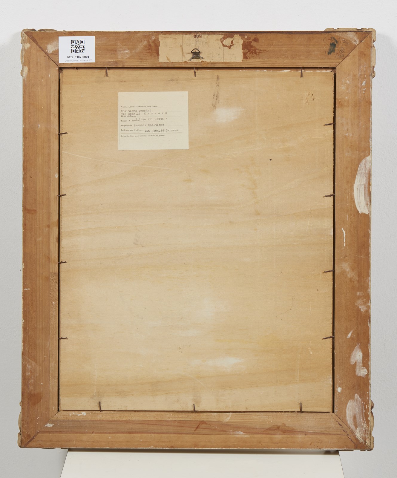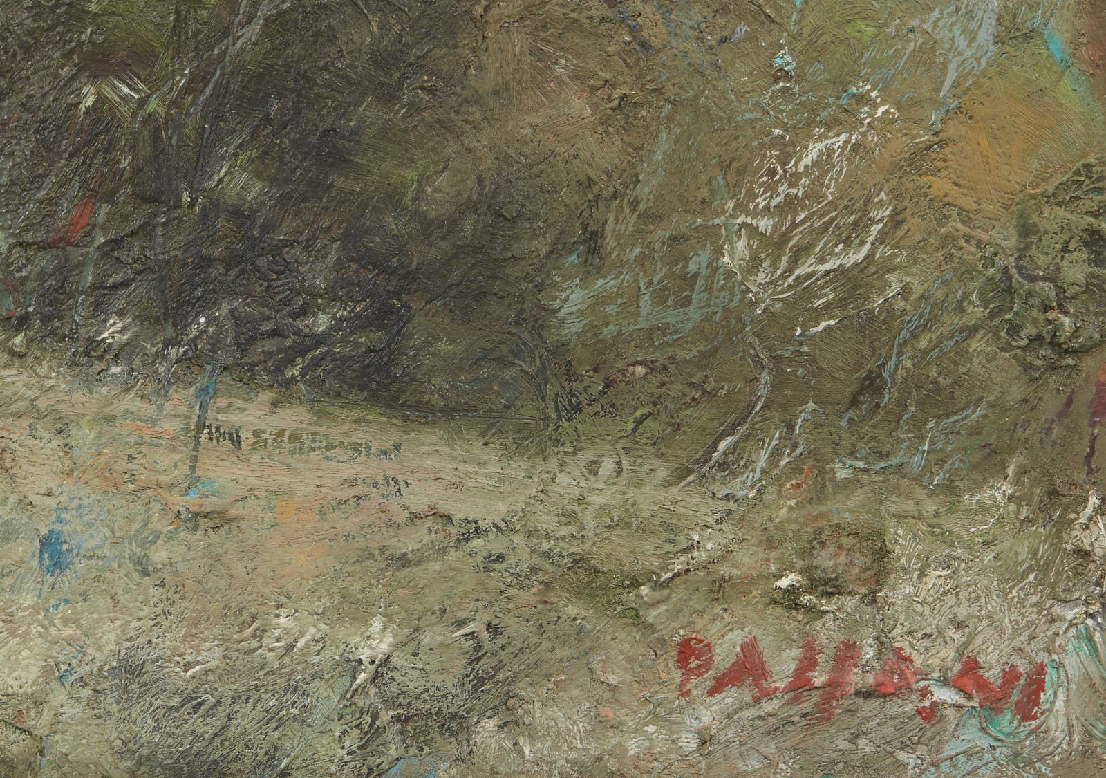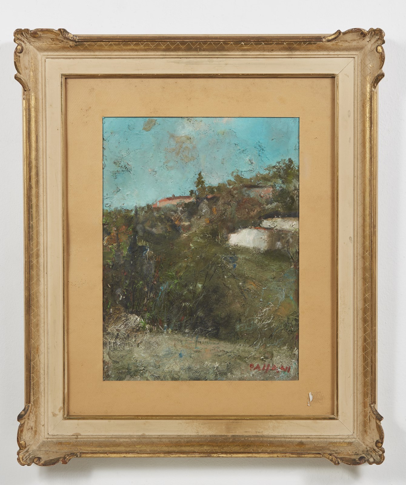 PASSANI GUALTIERO (1926 - 2019) Casa sul monte. Olio su faesite. Cm 40,00 x 50,00. Firma in basso a destra. Al retro cartiglio descrittivo. Cornice presente