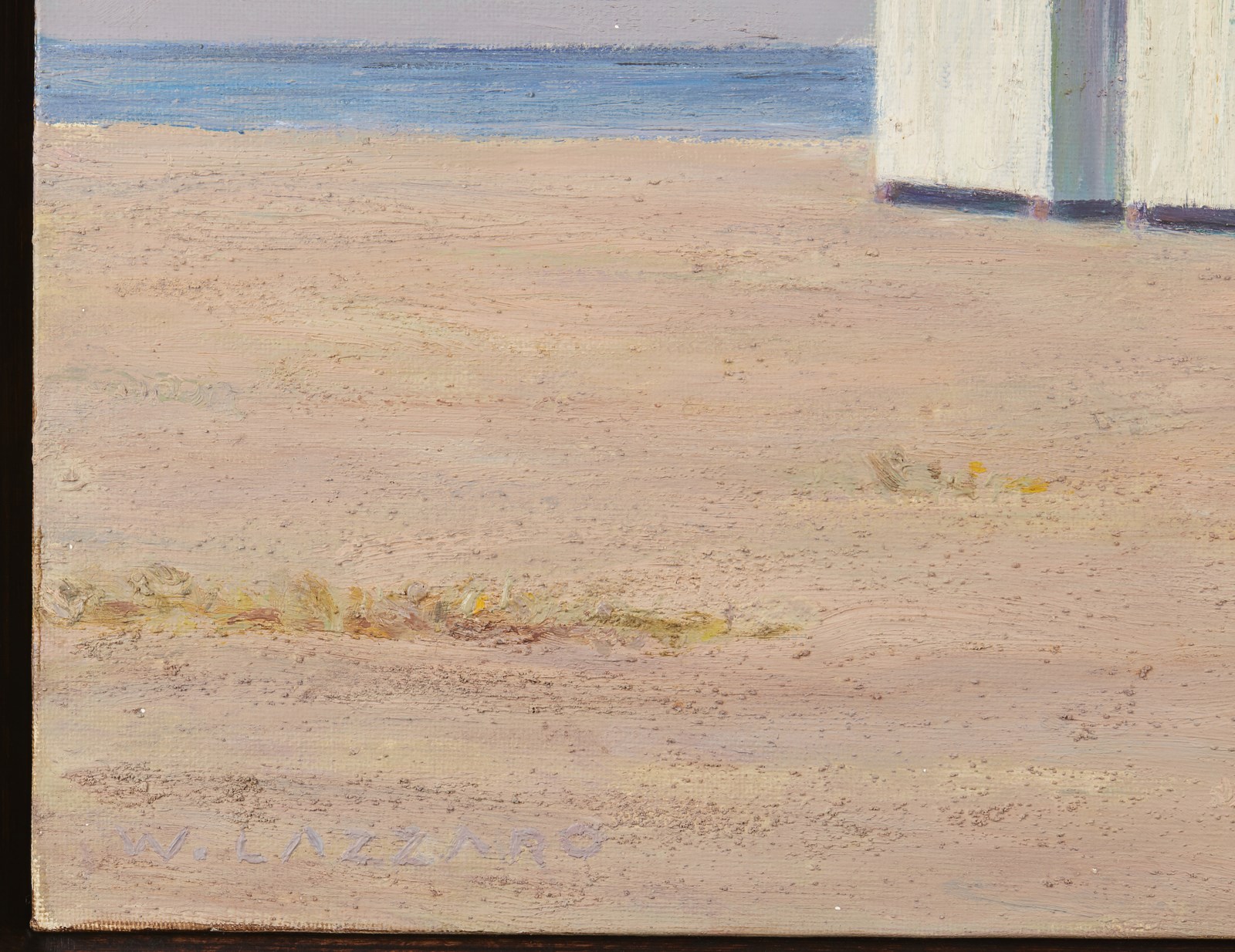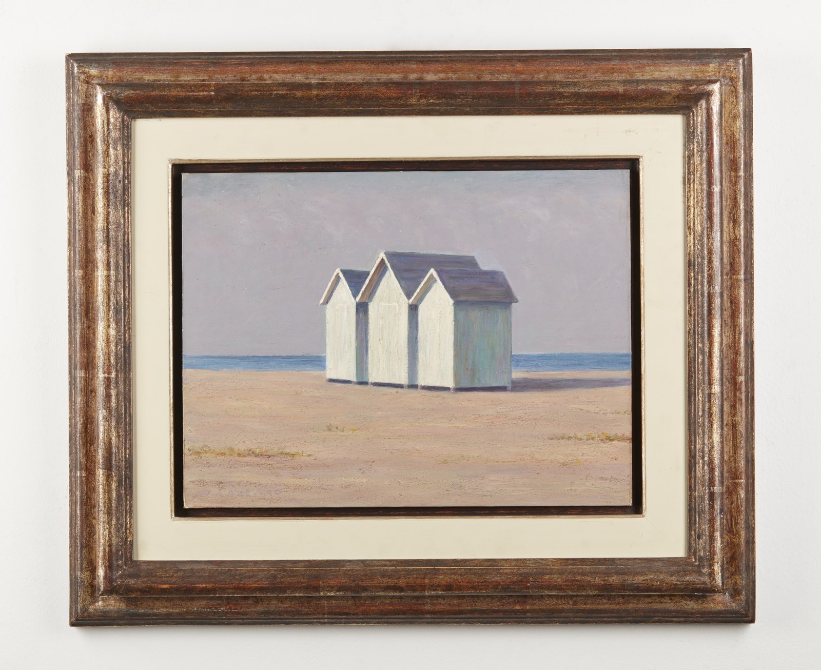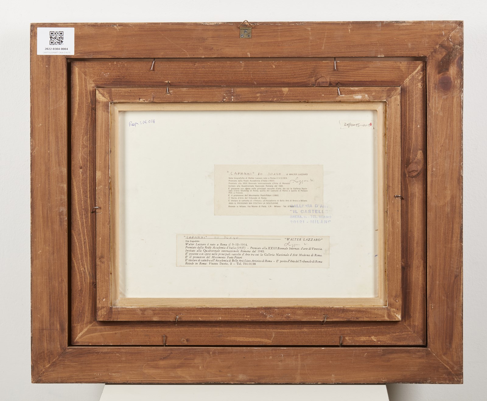 LAZZARO WALTER (1914 - 1989) Capanni. 1980. Olio su cartone telato. Cm 40,00 x 30,00. Firma in basso a sinistra. Opera archiviata presso la Galleria d'arte Il Castello, Milano, come da documentazione fotografica allegata all'opera. Lievi difetti. . Cornice presente