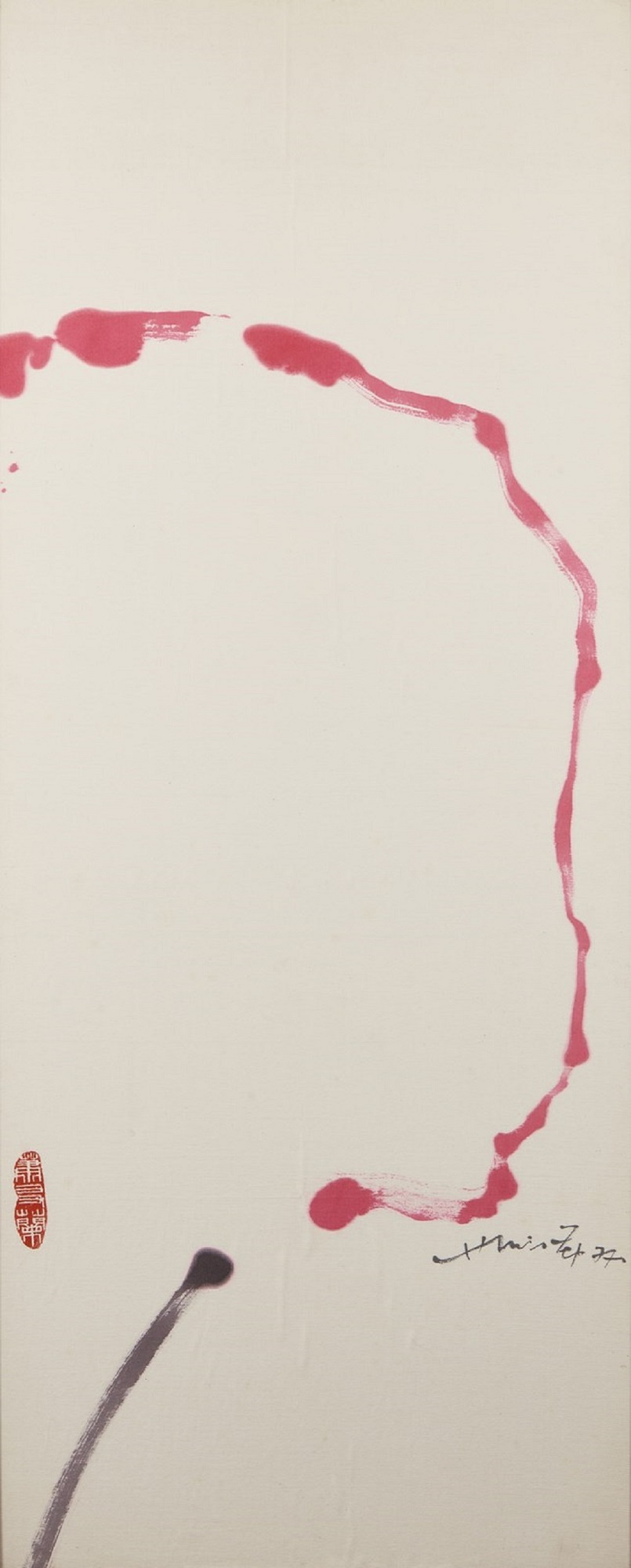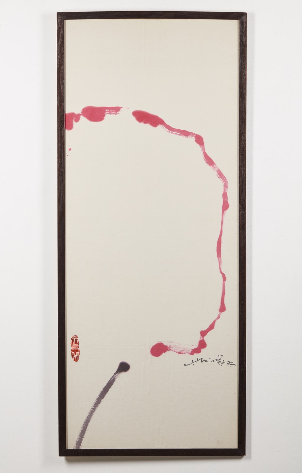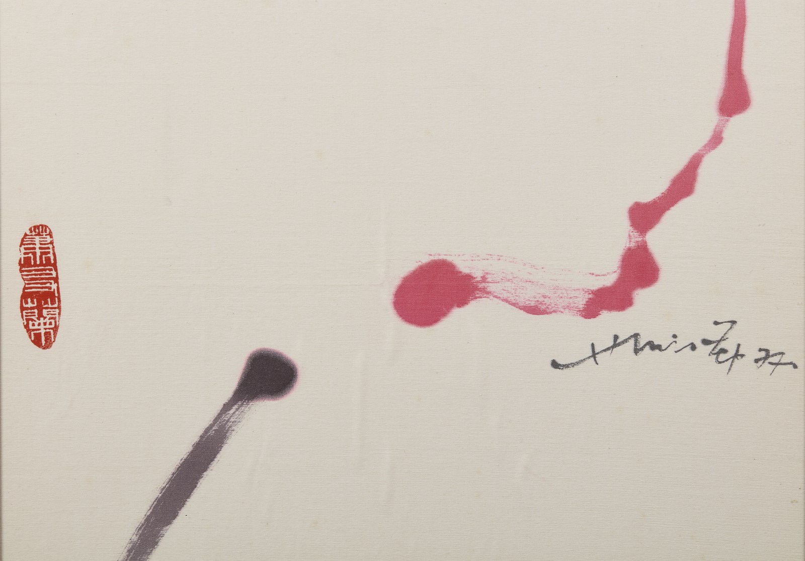 CHIN HSIAO (n. 1935) Ch'an-33. 1977. Tecnica mista su tela. Cm 59,00 x 143,00. Firma e anno in basso a destra. Pubblicazione: Hsiao- Maestri Contemporanei a cura di Enzo Biffi Gentili & Francis R. Lee, Edizioni d'arte Vanessa, 1979, ill.4. Cornice presente