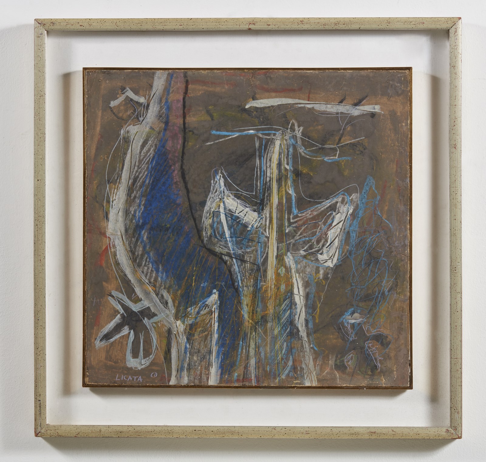 LICATA RICCARDO (1929 - 2014) Fermento. 1960. Tecnica mista su carta. Cm 56,00 x 56,00. Firma e anno in basso a sinistra. Cartiglio descrittivo al retro. Opera archiviata presso lo Studio Granzotto, Sacile. Difetti. . Cornice presente