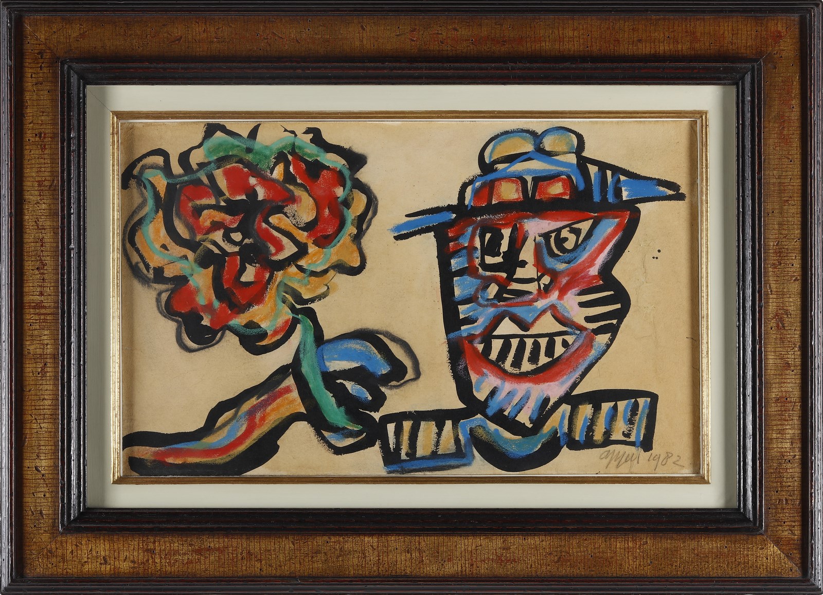 APPEL KAREL (1921 - 2006) Senza titolo. 1982. Tecnica mista su carta. Cm 48,00 x 30,00. Firma e anno in basso a destra. Lievi difetti. Cornice presente