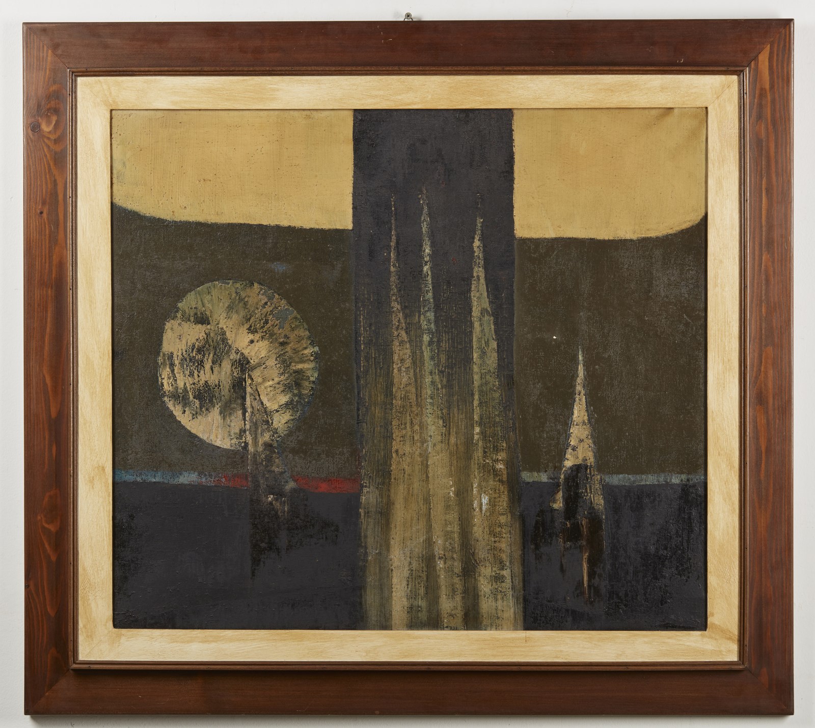 RECALCATI ANTONIO (n. 1938) Paesaggio. 1958. Olio su tela . Cm 80,00 x 70,00. Al retro firma, titolo, anno e cartiglio Città di Cantù, 1958. Lievi difetti. . Cornice presente