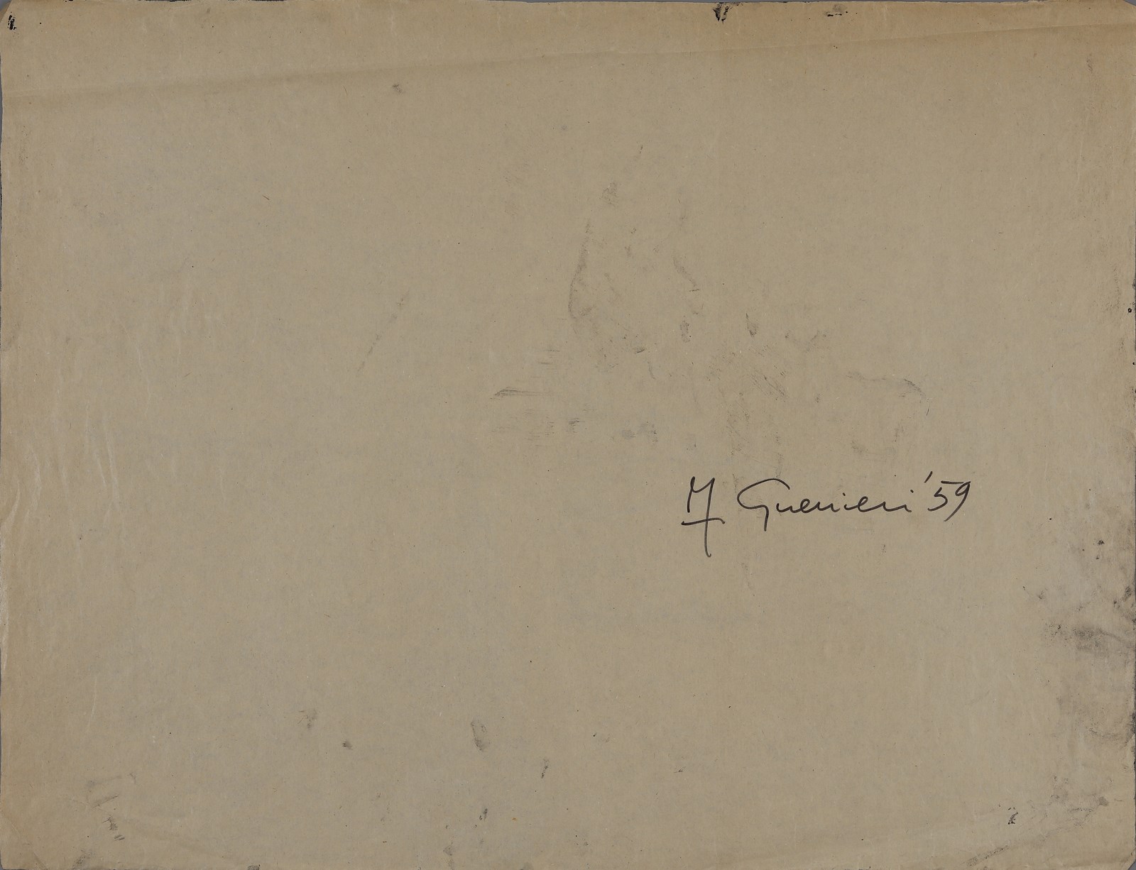 GUERRIERI FRANCESCO (n. 1931) Senza titolo. 1959. Tecnica mista su carta. Cm 48,50 x 37,50. Al retro firma e anno. Difetti.