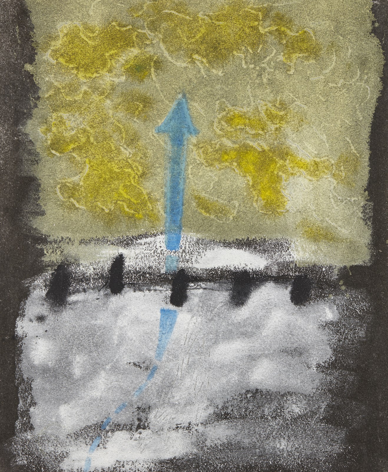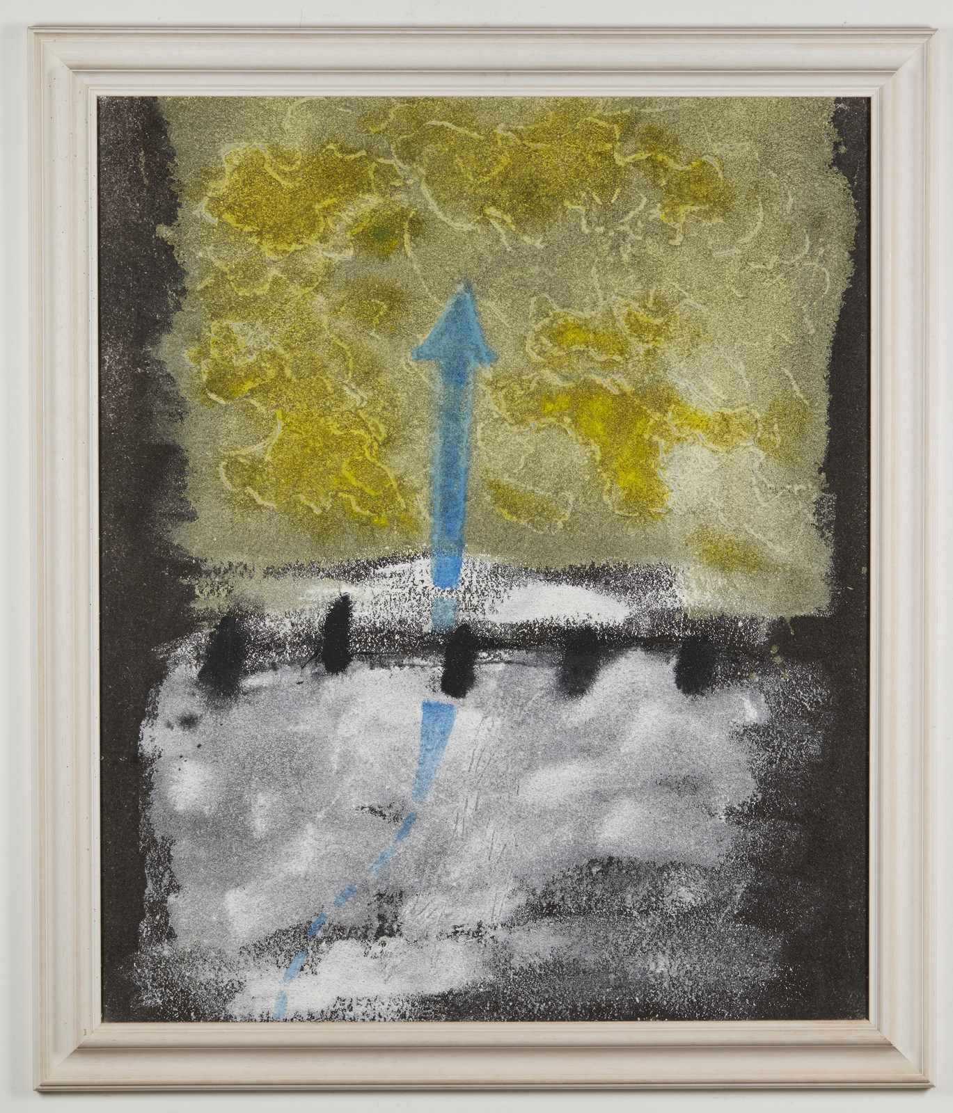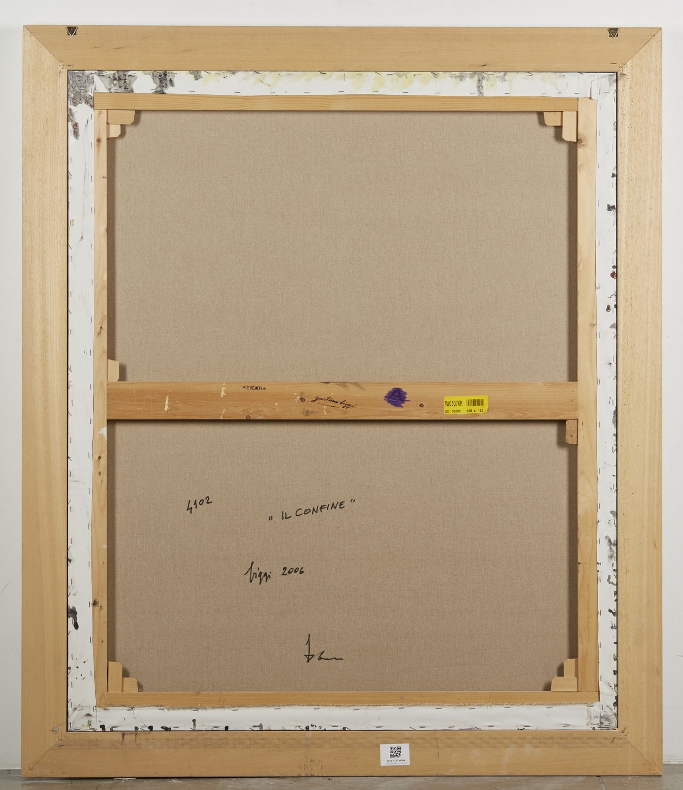 BIGGI GASTONE (1925 - 2014) Eventi - Il confine. 2006. Idropittura su tela. Cm 100,00 x 120,00. Al retro titolo, firma e anno. Autentica dell'artista su fotografia riportante il relativo numero d'inventario. . Cornice presente