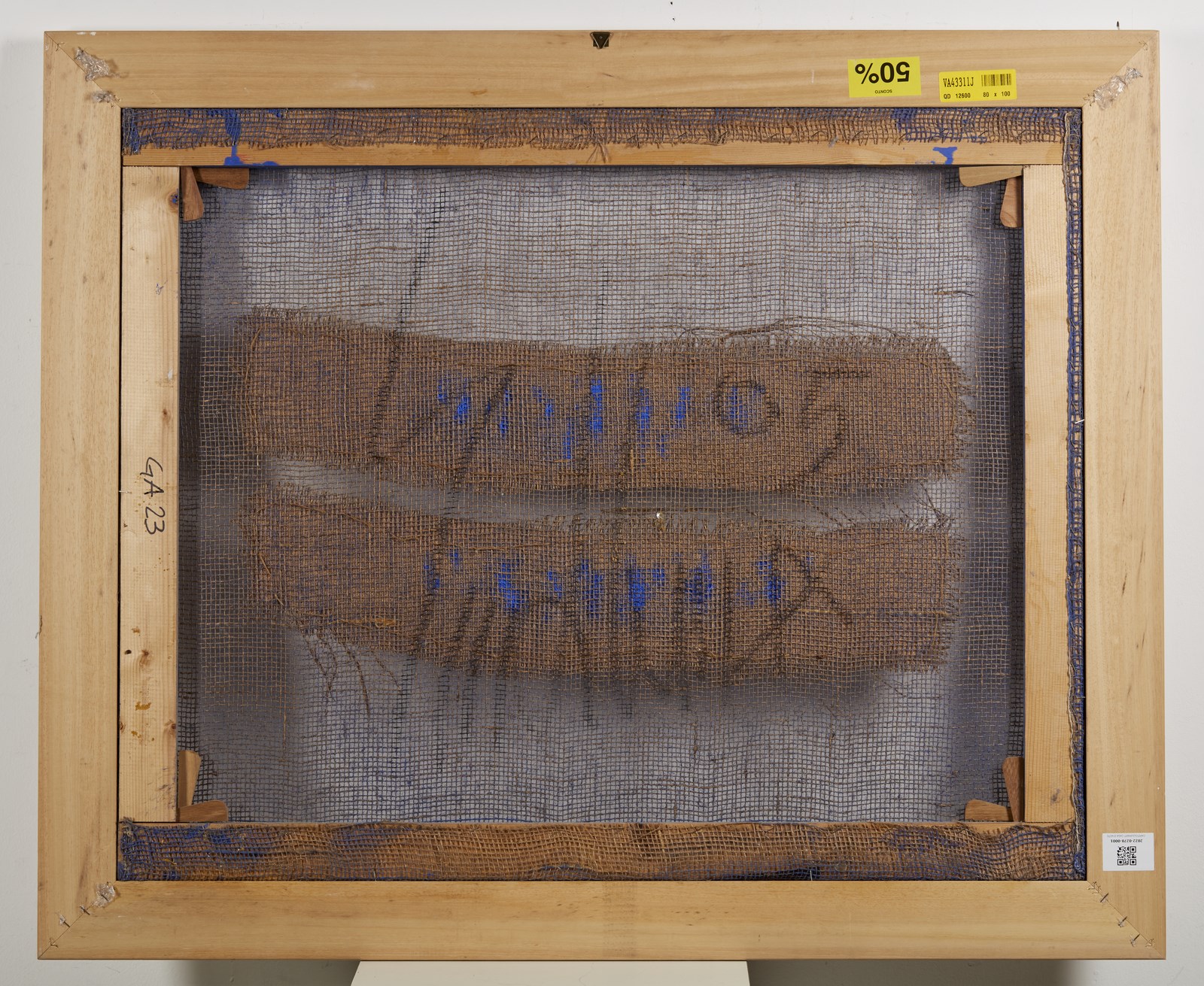 EMBLEMA SALVATORE (1929 - 2006) Senza titolo. 2005. Tecnica mista su tela di juta. Cm 100,00 x 80,00. Firma e anno al retro. Autentica su fotografia di Auricchio Raffaella Emblema riportante il relativo numero d'inventario. Cornice presente