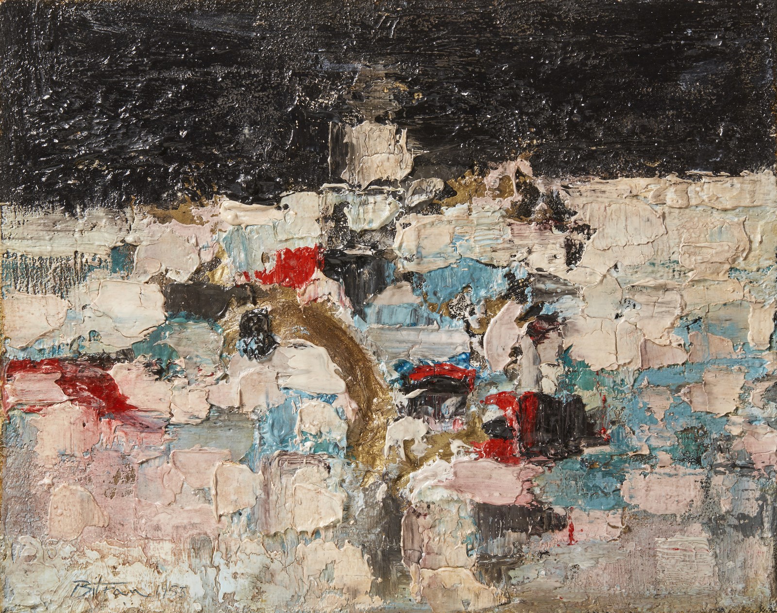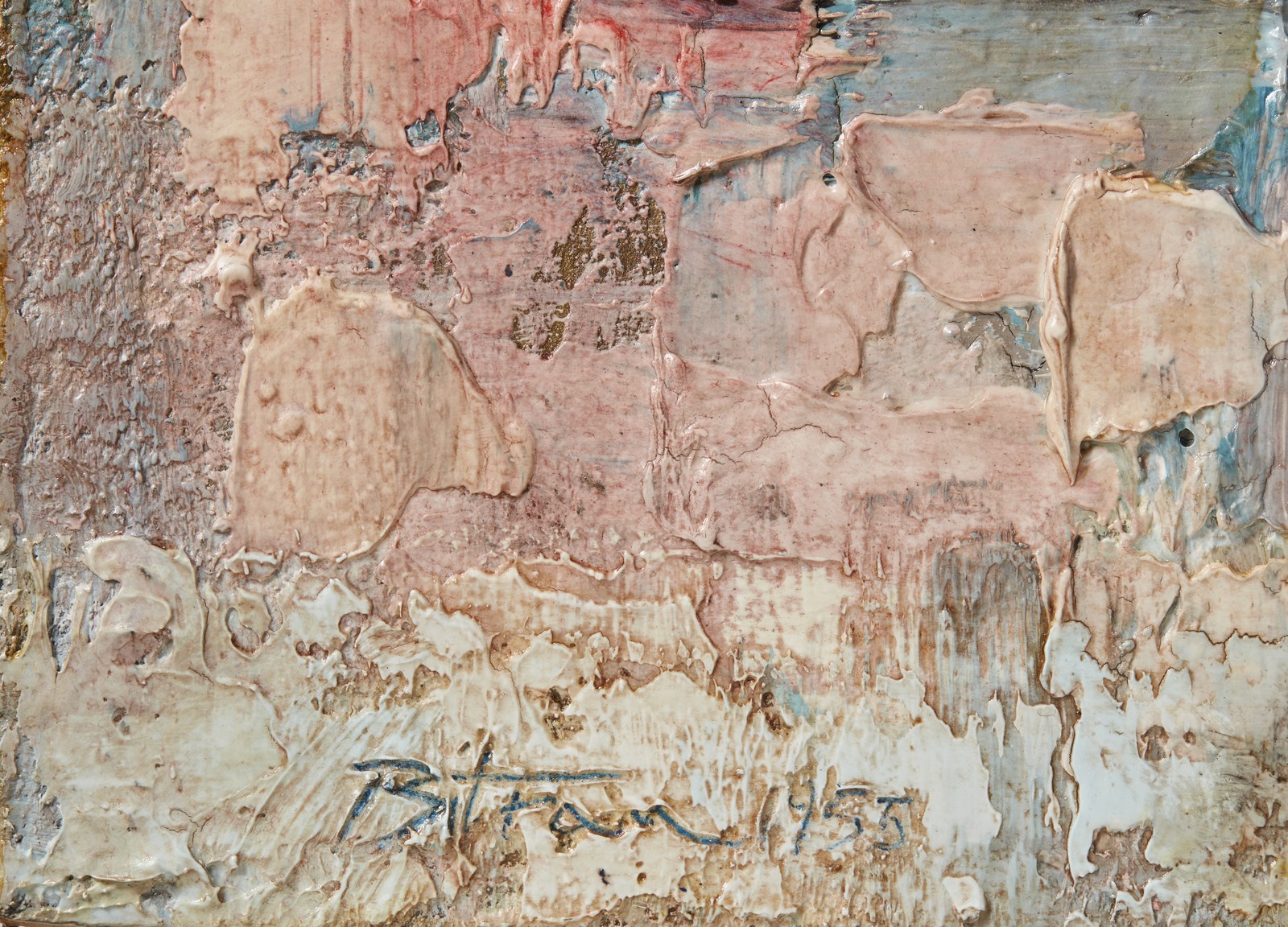 BITRAN ALBERT (1929 - 2018) Senza titolo. 1955. Olio su tavola. Cm 41,50 x 33,00. Firma e anno in basso a sinistra. Lievi difetti.