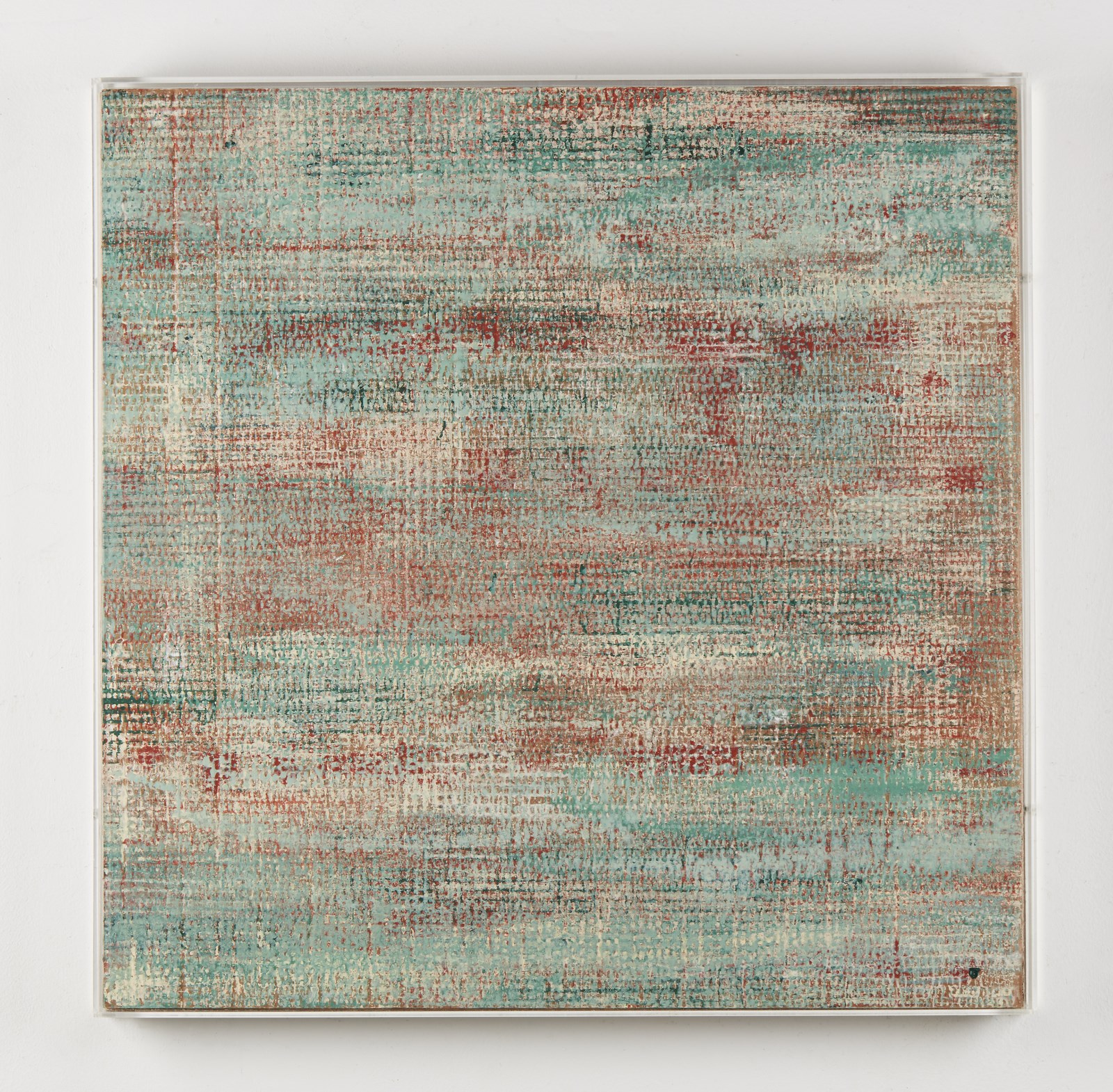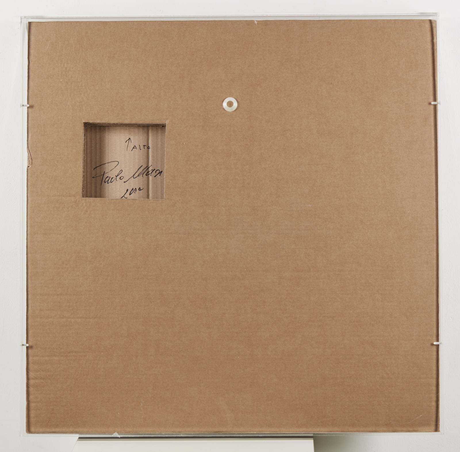 MASI PAOLO (n. 1933) Senza titolo. 2000. Tecnica mista su cartone. Cm 70,00 x 70,00. Al retro firma e anno. Entro teca di plexiglass. Autentica dell'artista su fotografia. Lievi difetti. . Cornice presente