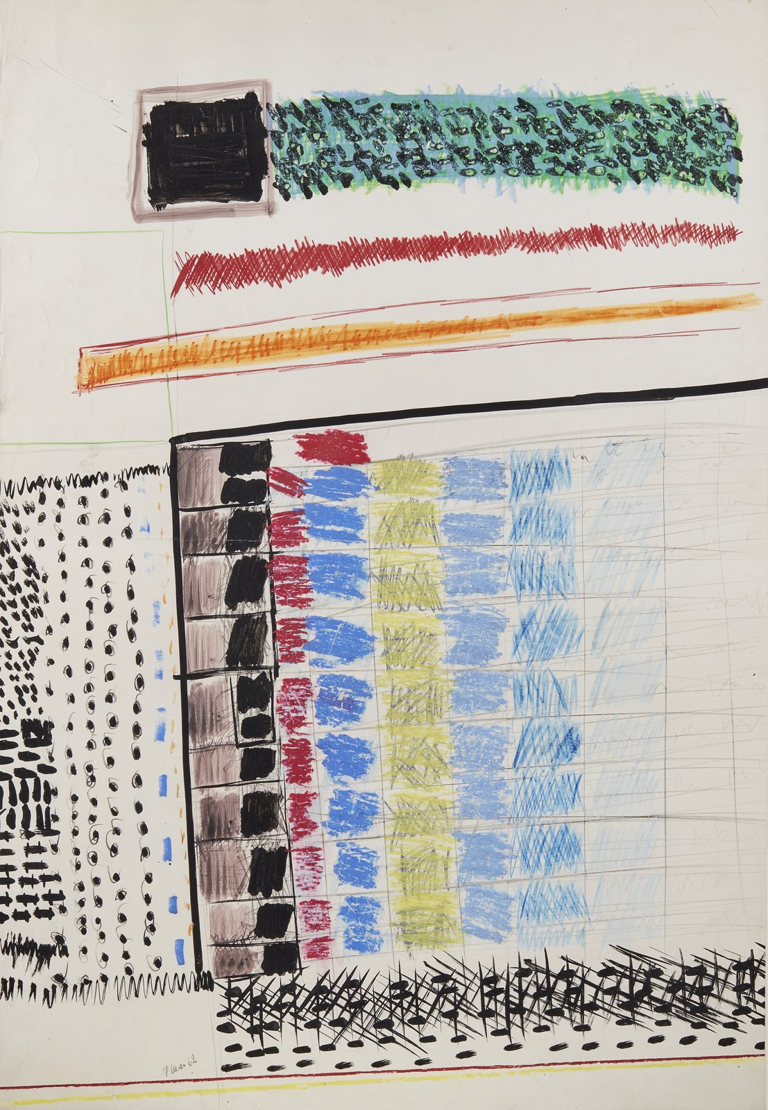 MASI PAOLO (n. 1933) Senza titolo. 1962. Tecnica mista su carta. Cm 66,00 x 95,00. Firma e anno in basso a sinistra. Difetti. . Cornice presente