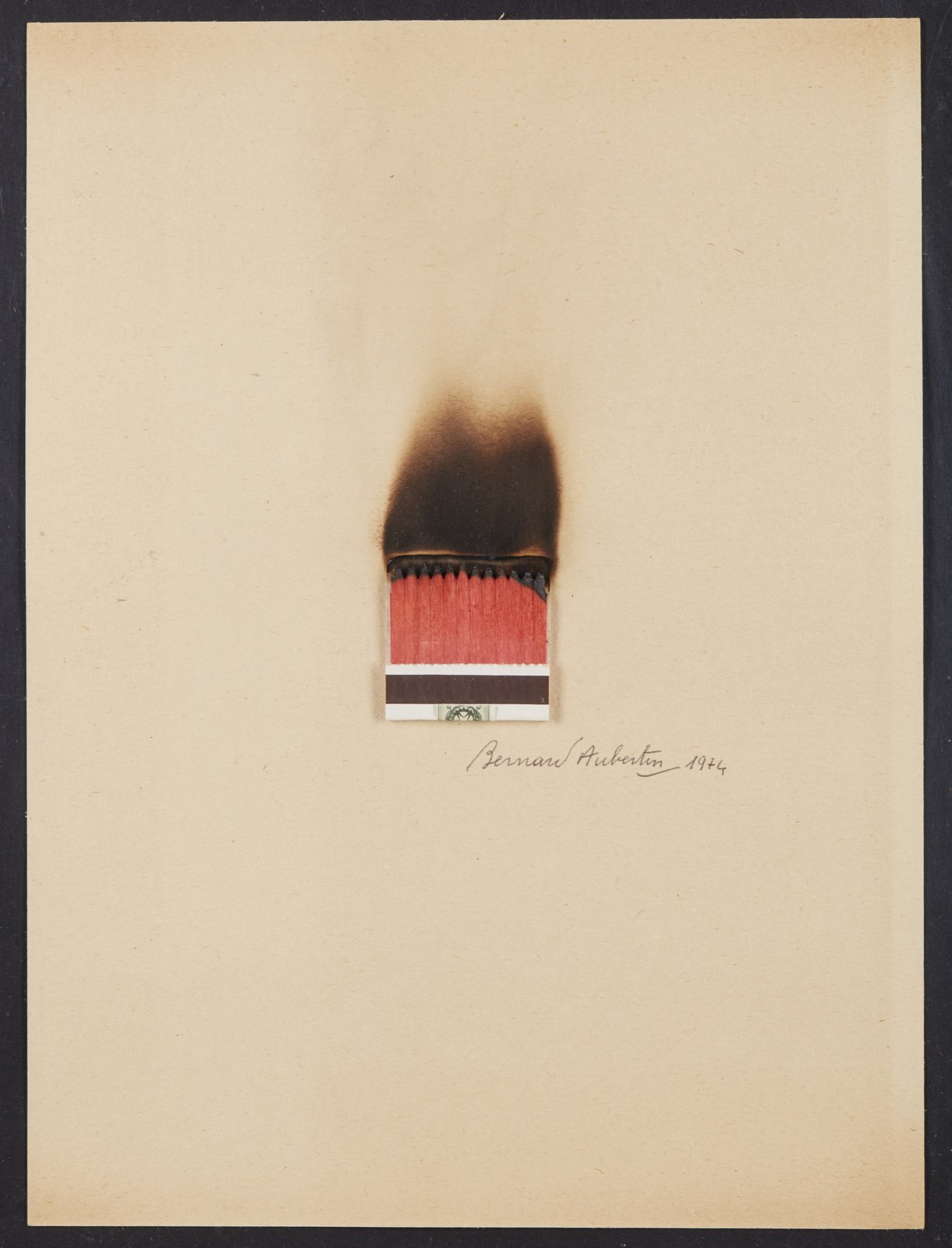 AUBERTIN BERNARD (1934 - 2015) Dessin de feu. 1974. Fiammiferi bruciati su carta. Cm 28,00 x 37,50. Firma e anno in basso a destra. Autentica su fotografia M&D Arte con timbro e firma Giancarlo Rovetta. . Cornice presente
