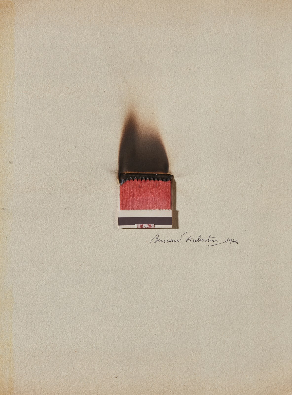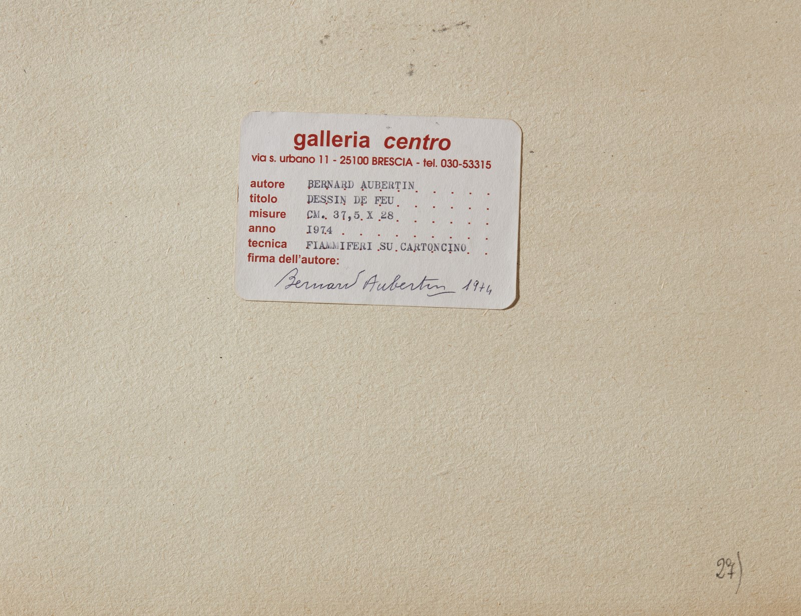 AUBERTIN BERNARD (1934 - 2015) Dessin de feu. 1974. Fiammiferi bruciati su carta. Cm 28,00 x 37,50. Firma e anno in basso a destra. Autentica su fotografia M&D Arte con timbro e firma Giancarlo Rovetta.