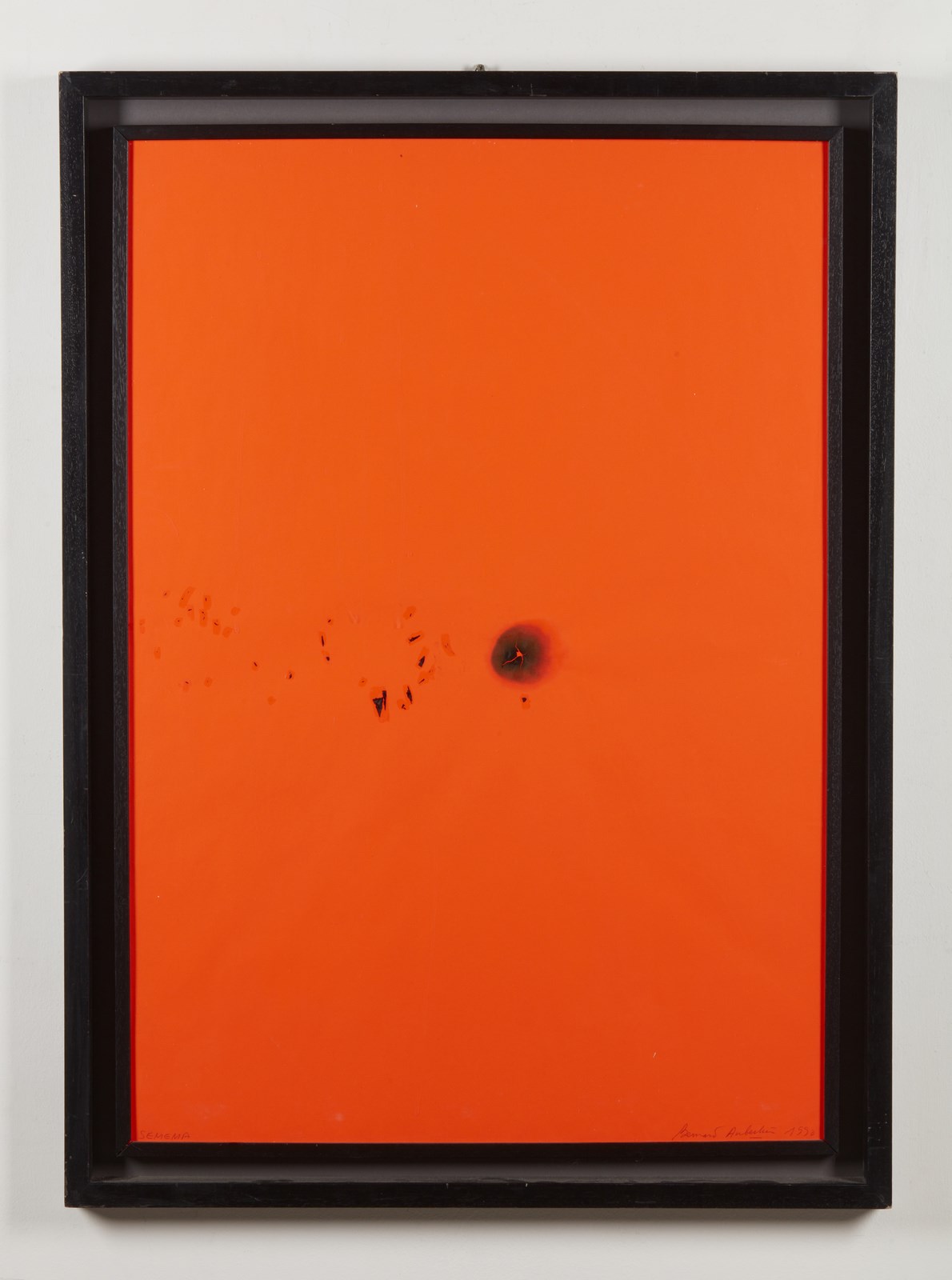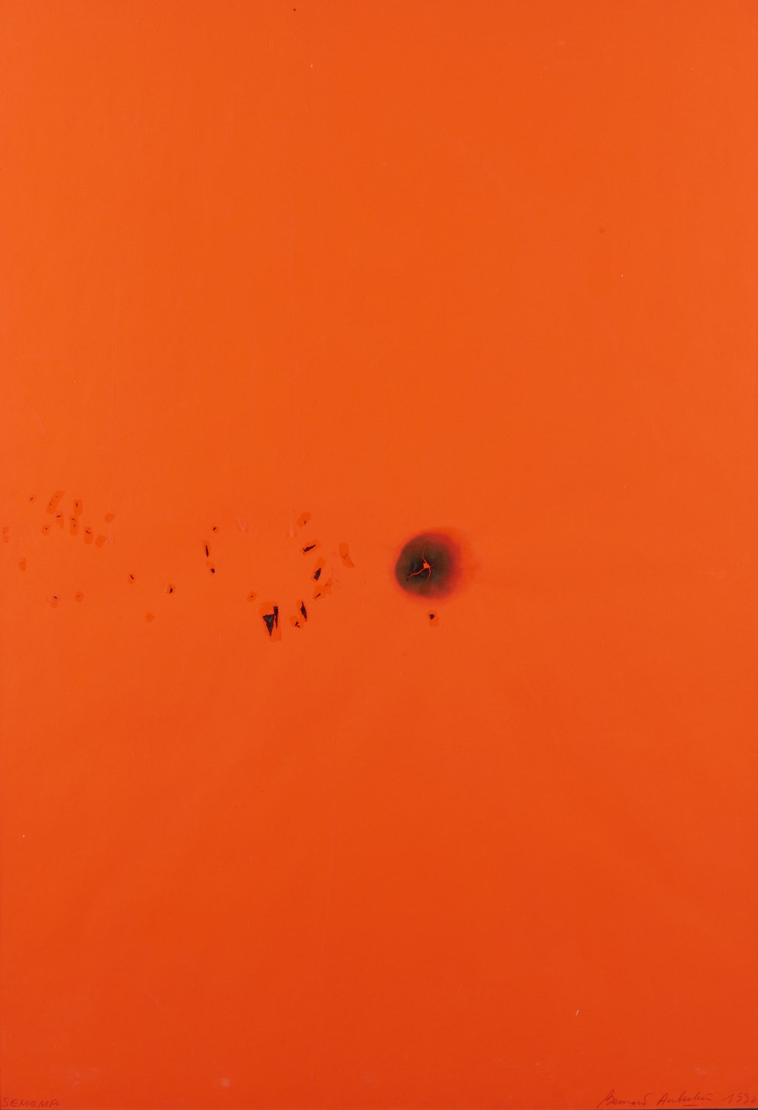 AUBERTIN BERNARD (1934 - 2015) Semema. 1990. Tecnica mista su carta. Cm 70,00 x 100,00. Firma e anno in basso a destra. Autentica dell'artista su fotografia. Pubblicazione: Bernard Aubertin - a ferro e fuoco, opere dal 1962 al 1990 e performances, Fondazione Berardinelli, 2008. Lievi difetti.