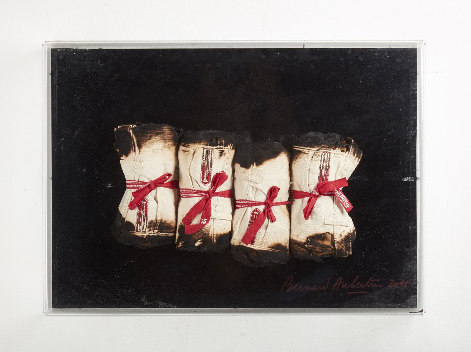 AUBERTIN BERNARD (1934 - 2015) Unlimited. 2011. Tecnica mista e applicazioni su tavola. Cm 70,00 x 50,00. Firma e anno in basso a destra. Autentica dell'artista su fotografia. Pubblicazione: Bernard Aubertin - Unlimited, a cura di Sandro Orlandi, Fabio Anselmi, Paolo Mozzo, Melania Gazzotti, Maretti Editore, Repubblica di San Marino, 2011. Entro teca di plexiglass. Lievi difetti.