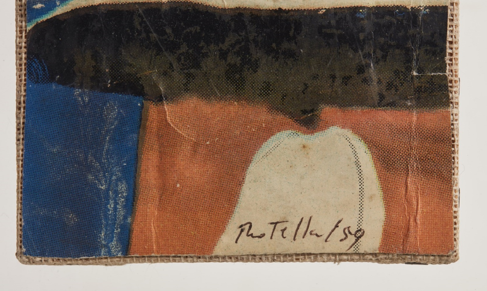 ROTELLA MIMMO (1918 - 2006) Senza titolo. 1959. Decollage su tela. Cm 9,00 x 13,50. Firma e anno in basso al centro. Entro teca di plexiglass. Opera archiviata presso la Fondazione Mimmo Rotella, Milano, come da documentazione fotografica allegata all'opera riportante il relativo numero d'inventario.