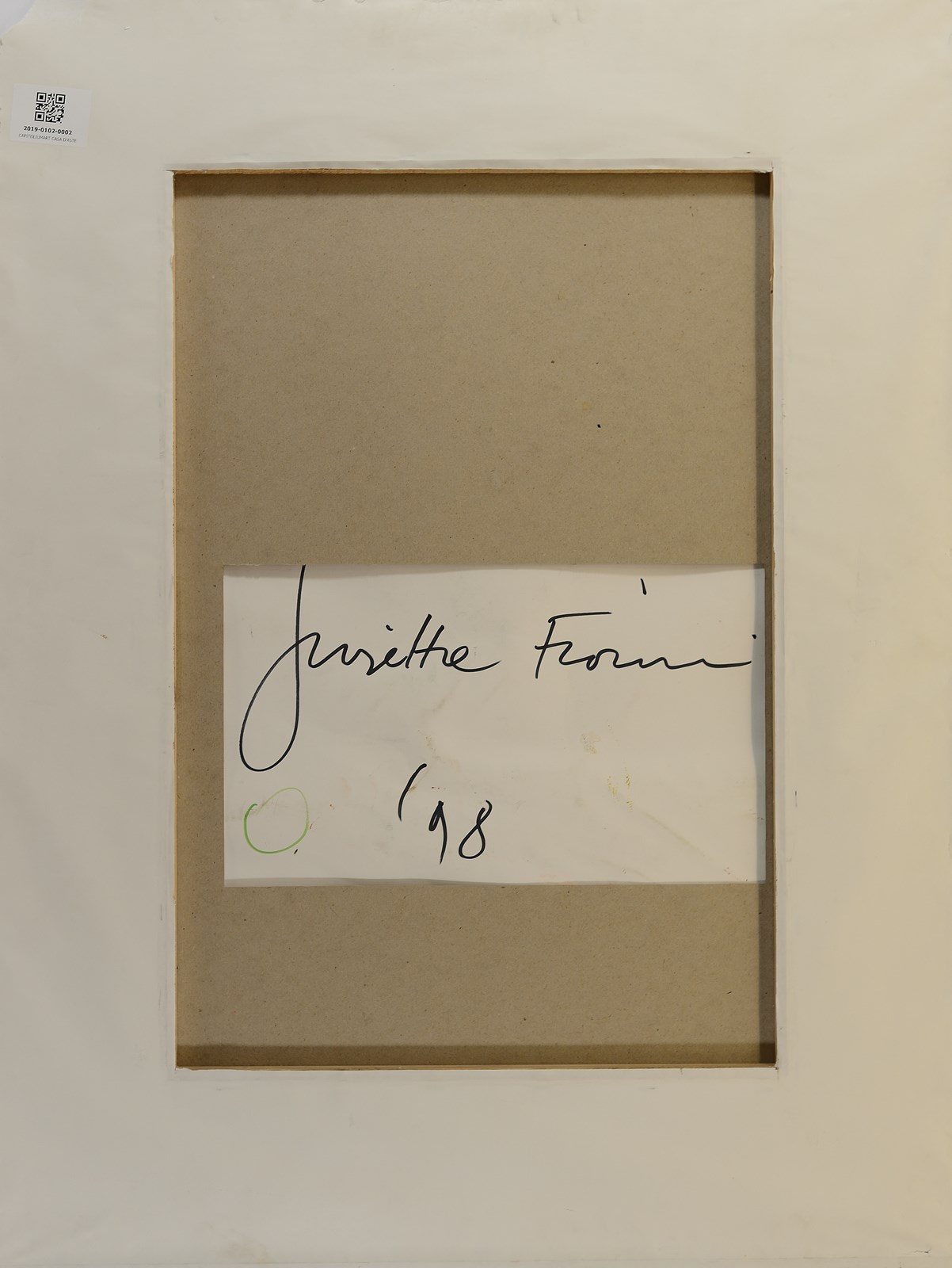 FIORONI GIOSETTA (n. 1932) Ai gusci bistrati dei pinoli. 1998. Tecnica mista su cartone. Cm 50,00 x 70,00. Firma, titolo, anno in basso. Firma e anno al retro. Autentica dell'artista su fotografia. Cerificato di autenticità di Elite Trading, Milano. . Cornice presente