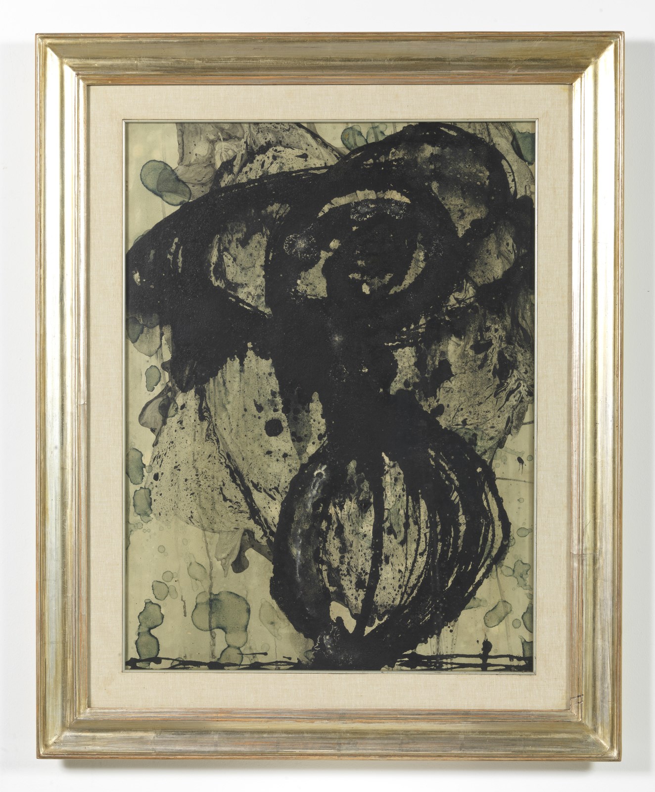 BAJ ENRICO (1924 - 2003) Spiralen. 1952. Tecnica mista su tela. Cm 58,50 x 79,00. Al retro titolo, firma, anno e dedica. Opera archiviata presso l'Archivio Enrico Baj - Roberta Cerini Baj, Varese, come da documentazione fotografica allegata all'opera riportante il relativo numero d'inventario.