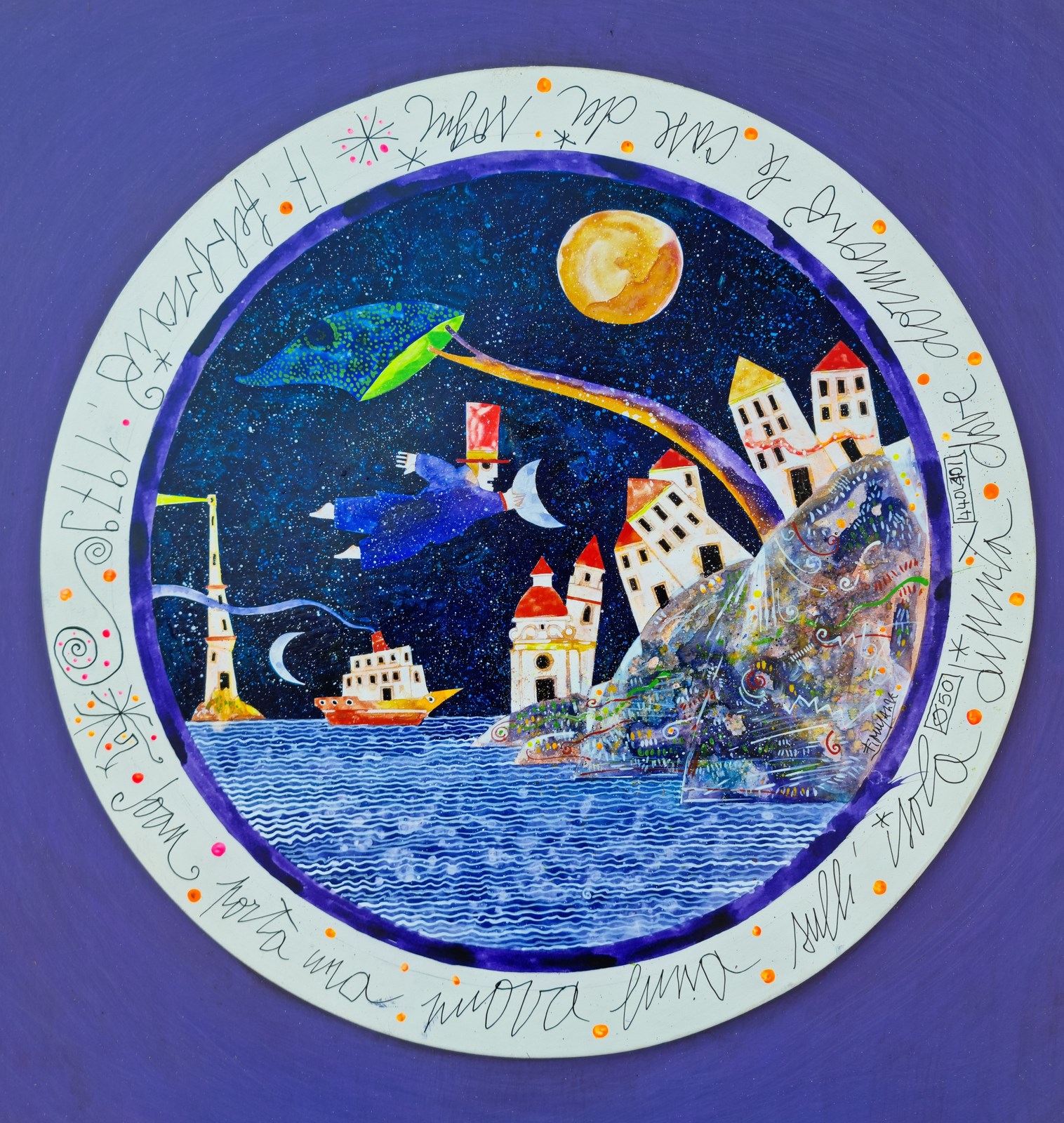 MUSANTE FRANCESCO (n. 1950) - Joan porta una nuova luna sull'isola dipinta dove dormono le case dei sogni.
