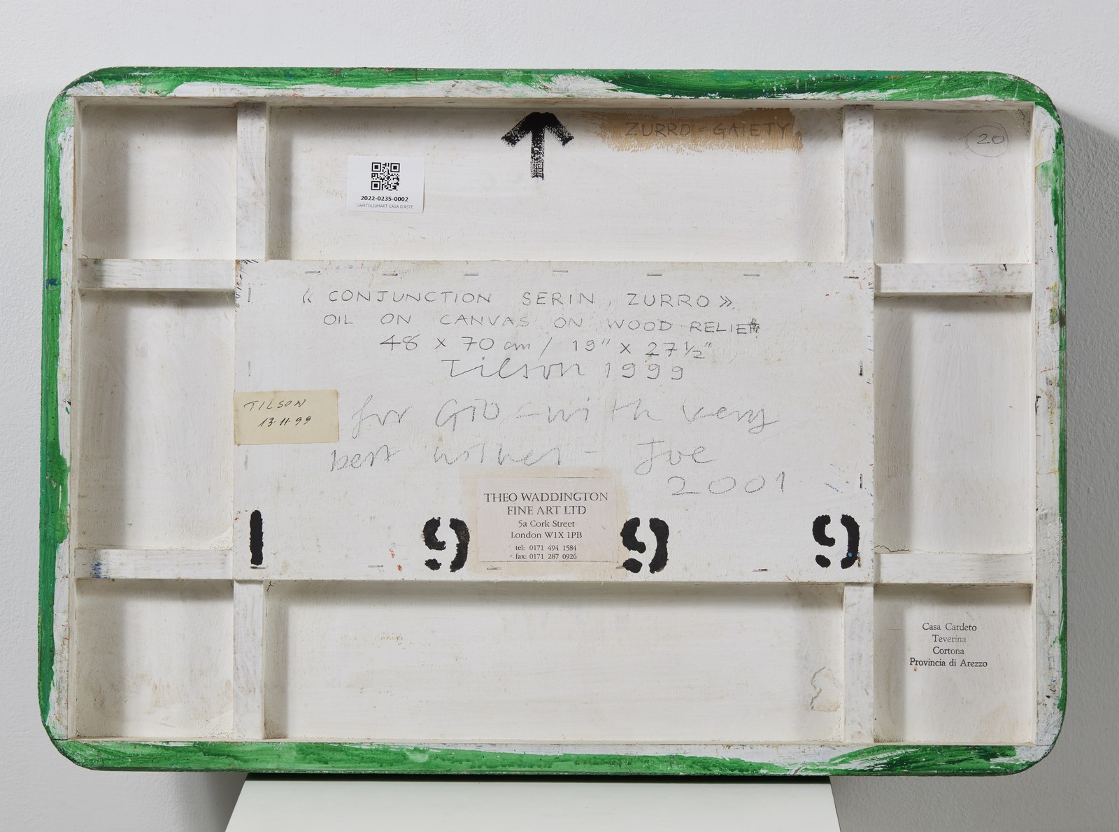 TILSON JOE (n. 1928) Congjunction Serin Zurro. 1999. Olio su tela applicata su tavola. Cm 70,00 x 48,00. Al retro titolo, firma, anno e cartiglio Theo Waddington Fine Art, Londra. Autentica dell'artista su fotografia. Lievi difetti.