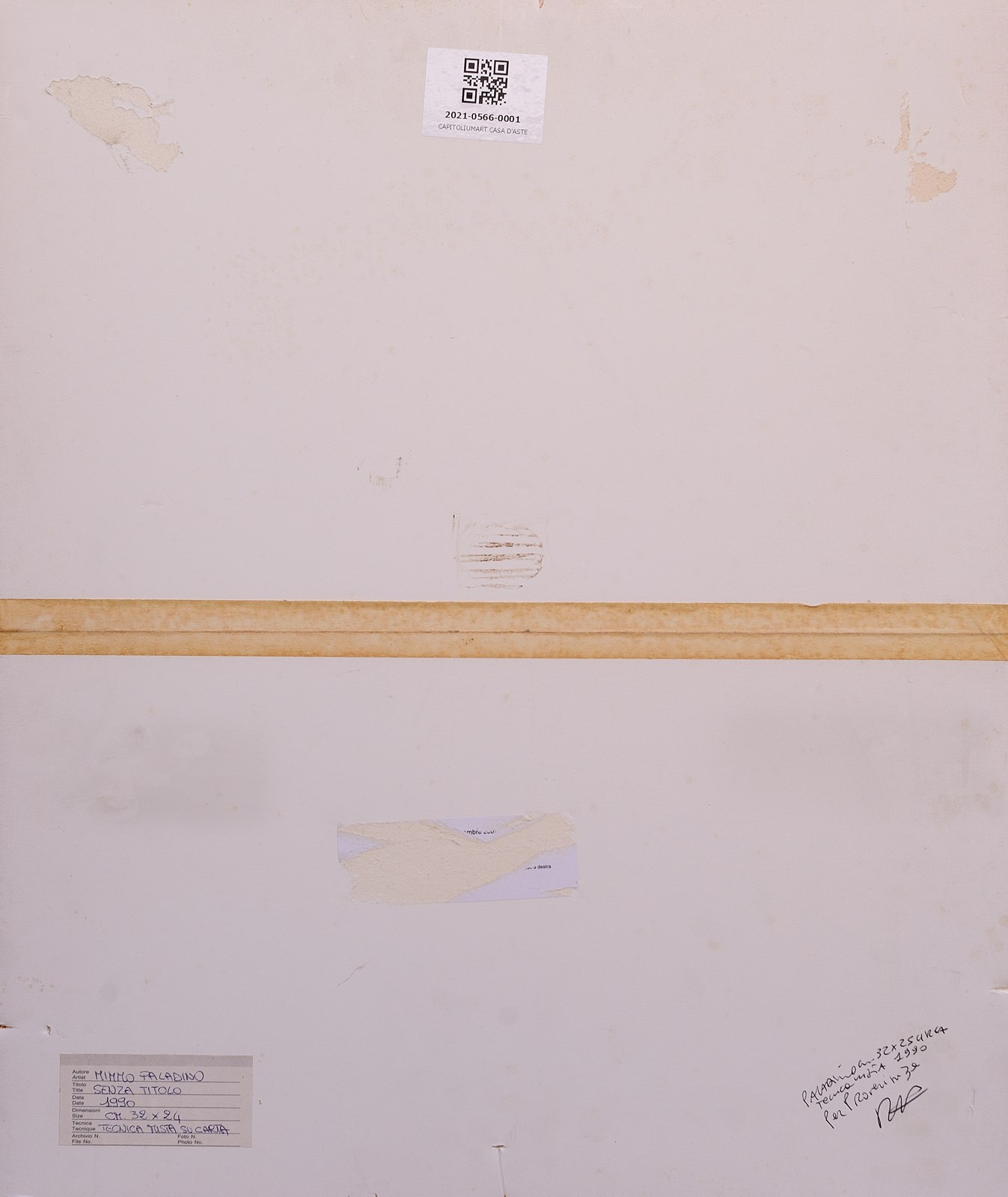 PALADINO MIMMO (n. 1948) Senza titolo. 1990. Tecnica mista e collage su carta. Cm 24,00 x 32,00. Firma e anno in basso a destra. Autentica dell'artista su fotografia. Cornice presente