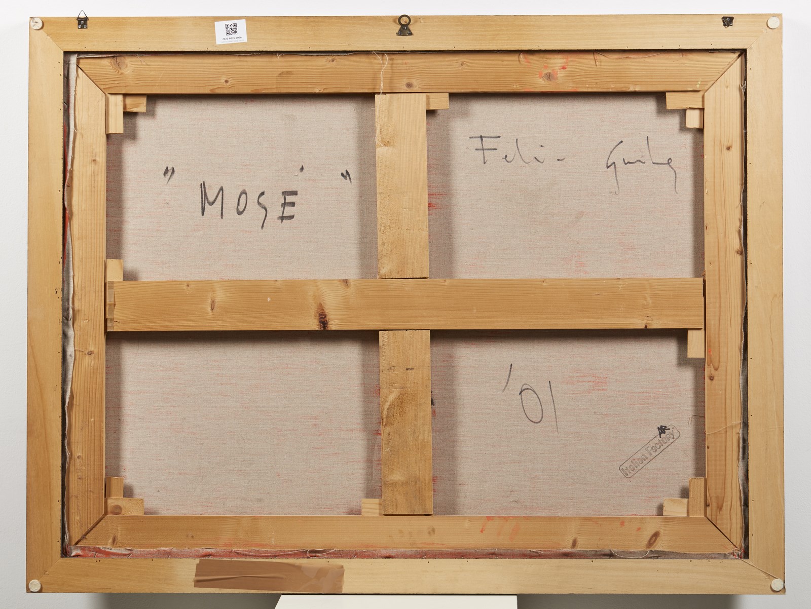 GUIDA FEDERICO (n. 1969) Mosè. 2001. Olio su tela . Cm 120,00 x 90,00. Firma e titolo al retro. Autentica dell'artista su fotografia. Lievi difetti. . Cornice presente