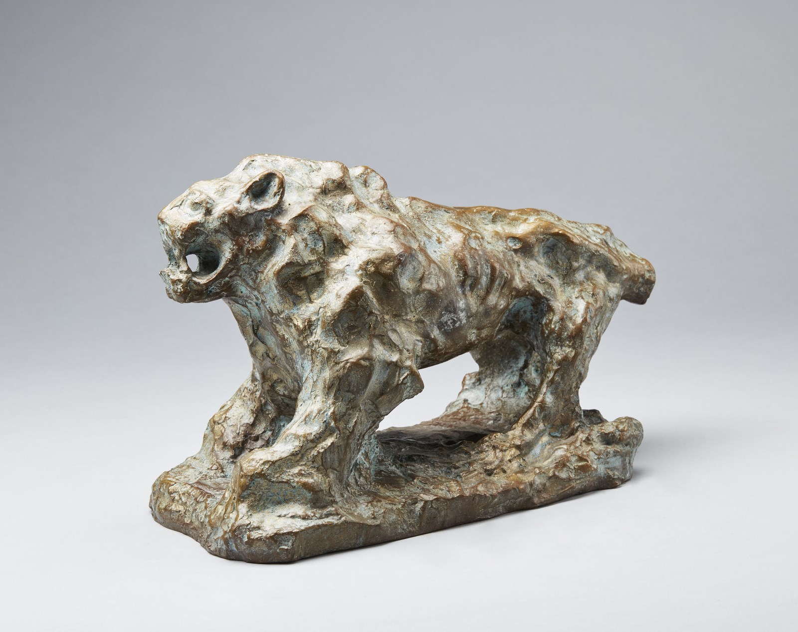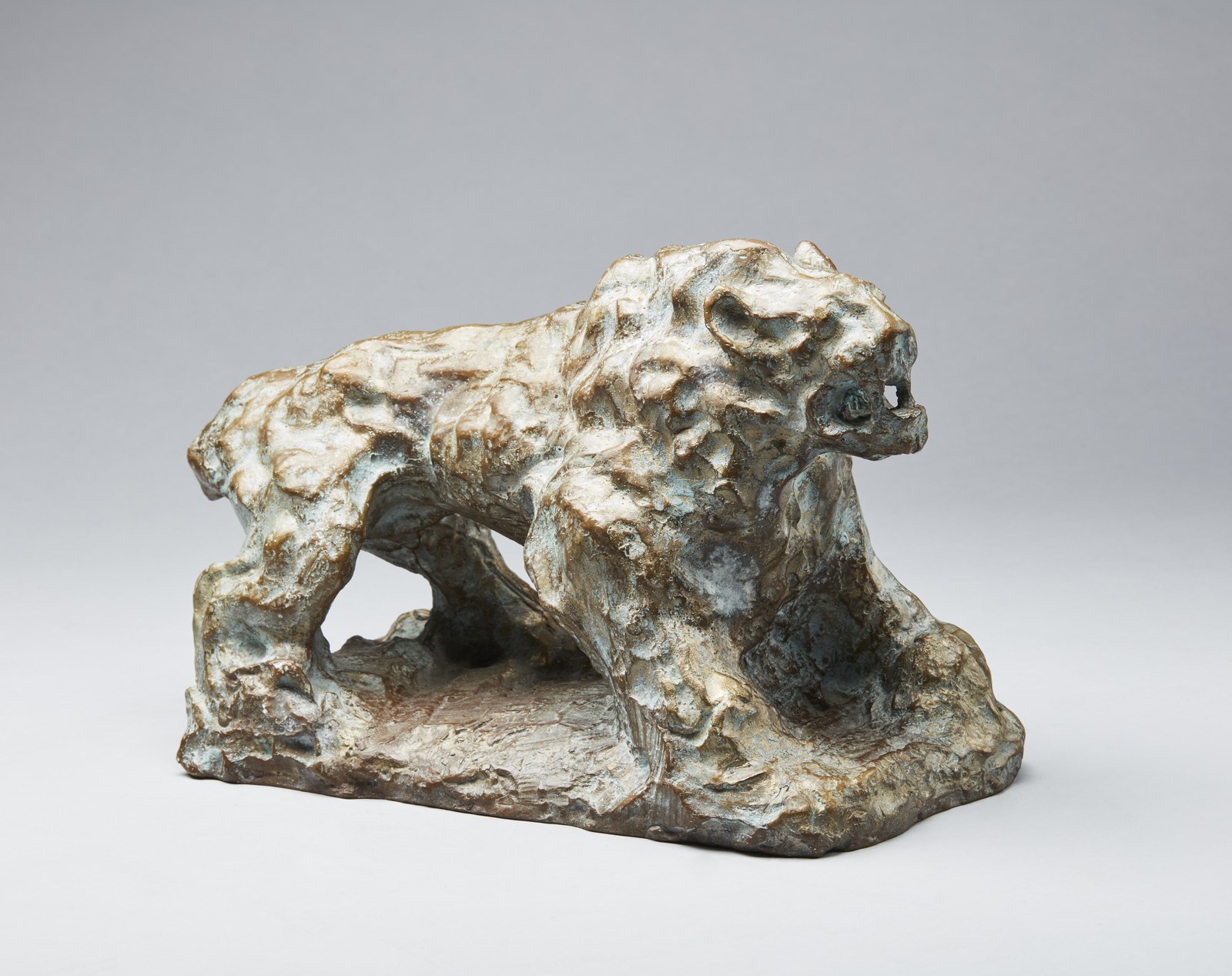 LIGABUE ANTONIO (1899 - 1965) Leone incompiuto. 1953. bronzo. Cm 33,00 x 20,50 x 15,50. Tiratura non presente. Edizione totale: 35 esemplari numerati da 1/35 a 35/35 + alcuni non numerati. Pubblicazione: Catalogo Generale di Antonio Ligabue - Pitture, Sculture, Disegni e Incisioni a cura di Augusto Agosta Tota, Parma 2020, Volume III, p.60 tav.46. Si tratta di una scultura appena abbozzata, di un non finito, importante per conoscere la tecnica utilizzata da Ligabue per costruire le sue crete. L'artista partiva dalla sottrazione di materia da un unico blocco per delineare la struttura del soggetto e concludeva con sovrapposizioni o incisioni a colpi di spatola per rifinire i particolari a modellazione ultimata. (M.D.A). Lievi difetti.