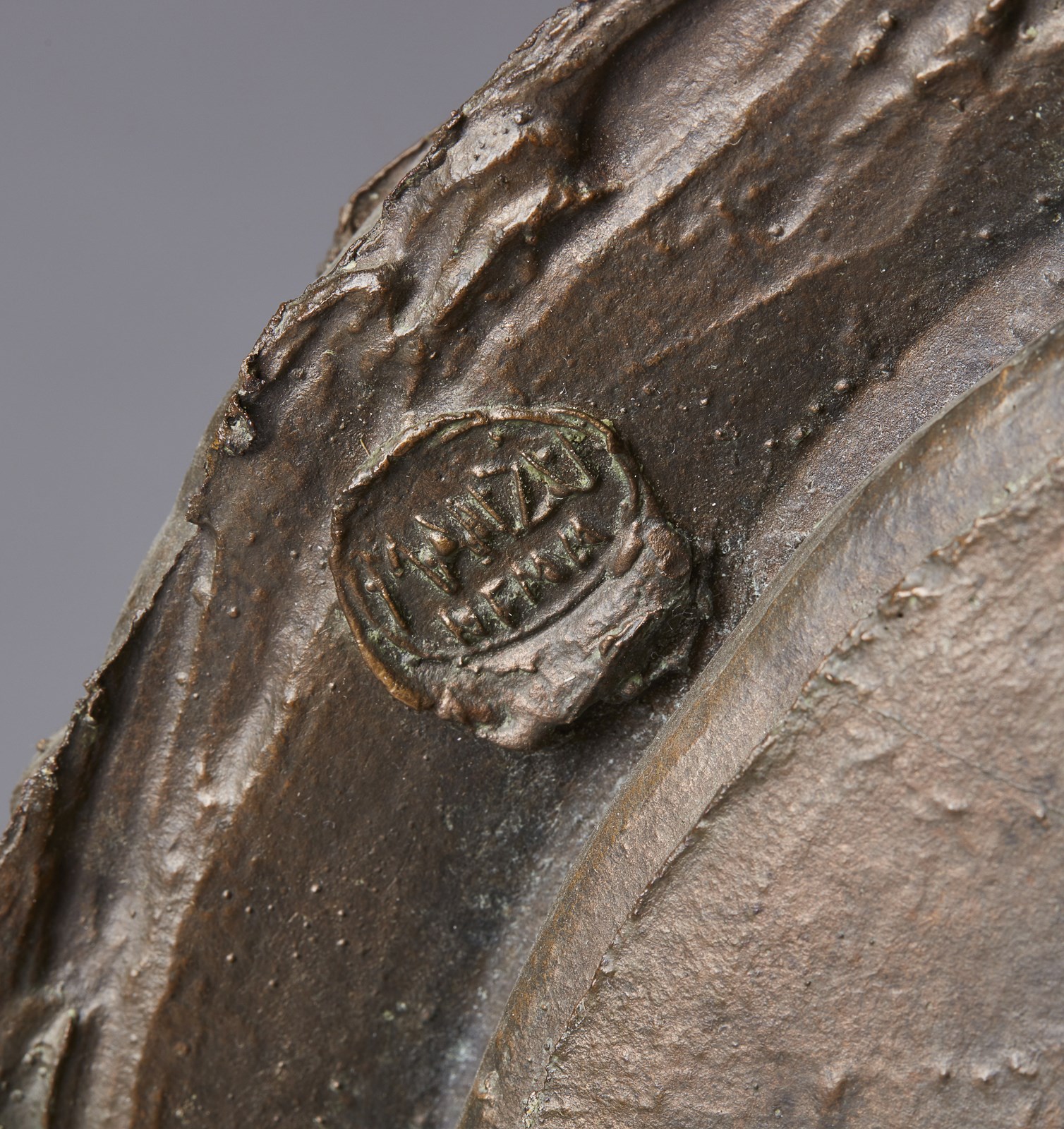 MANZU' GIACOMO (1908 - 1991) Studio per la porta della pace e della Guerra. 1965. Bassorilievo in bronzo. Cm 33,00 x 58,00 x 9,00. Prima variante. Firma incisa in alto a sinistra. Dimensioni senza base: 47x32 cm. Fotocopia dell'autentica dell'artista rilasciata l'11 Settembre 1989. Opera archiviata presso lo Studio Manzù, Ardea, come da dichiarazione di Inge Manzù del 7 Giugno 2005. Giacomo Manzù , a partire dagli anni '50, si impegna nella realizzazione di tre grandi portali in bronzo: uno per la Cattedrale di Salisburgo nel 1955, uno per San Pietro a Roma nel 1964 e uno per la chiesa di St. Laurenz a Rotterdam nel 968. Per ogni porta Manzù sceglie un tema iconografico, che riassume i motivi ispiratori della sua ricerca artistica: l'amore per Salisburgo, la morte per San Pietro e la pace e la guerra per Rotterdam.