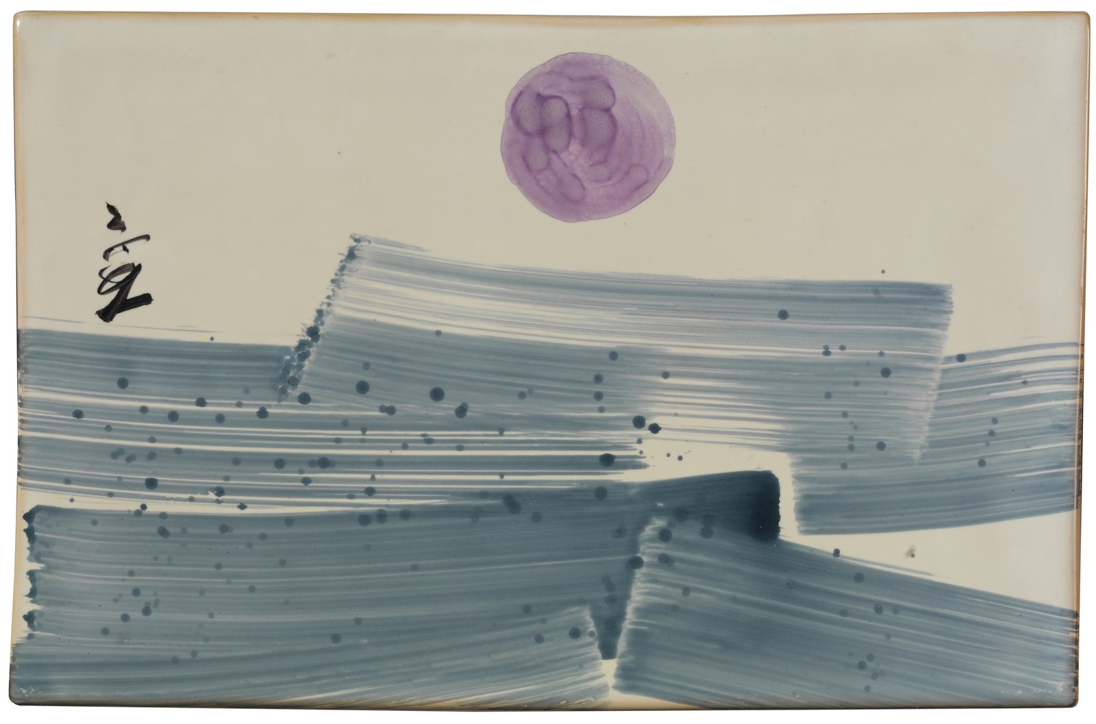 CHIN HSIAO (n. 1935) Senza titolo. Dipinto su ceramica. Cm 38,00 x 25,00. Firma in alto a sinistra. Lievi difetti. . Cornice presente
