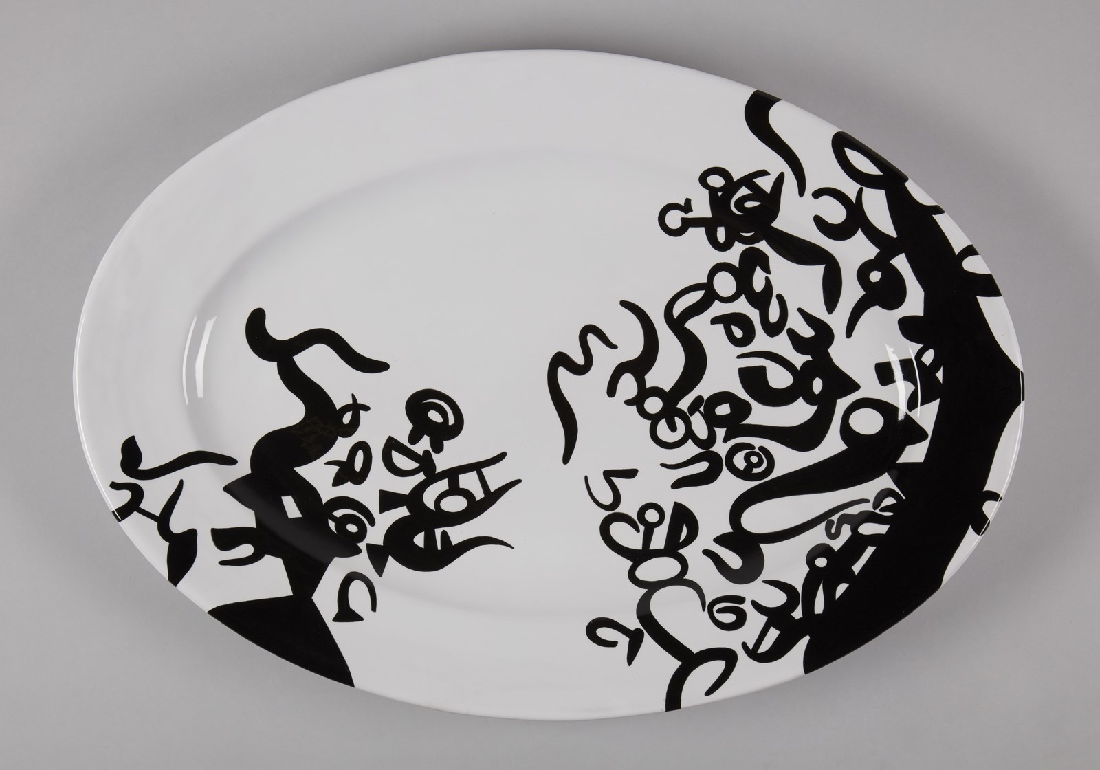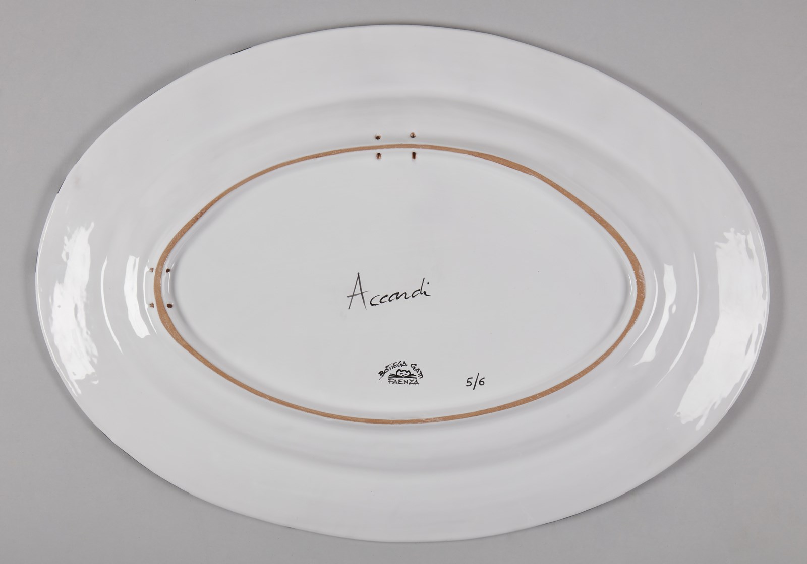 ACCARDI CARLA (1924 - 2014) Bianco nero. 2005. Piatto in ceramica. Cm 62,00 x 44,00 x 5,50. 5/6. Tiratura e firma al retro a pennarello.Opera archiviata presso lo Studio Accardi, Roma, come da documentazione fotografica allegata all'opera riportante il relativo numero d'inventario e la firma dell'artista. Ceramica realizzata da Bottega Gatti, Faenza. Lievi difetti.