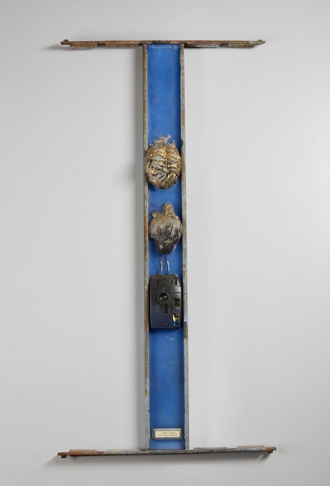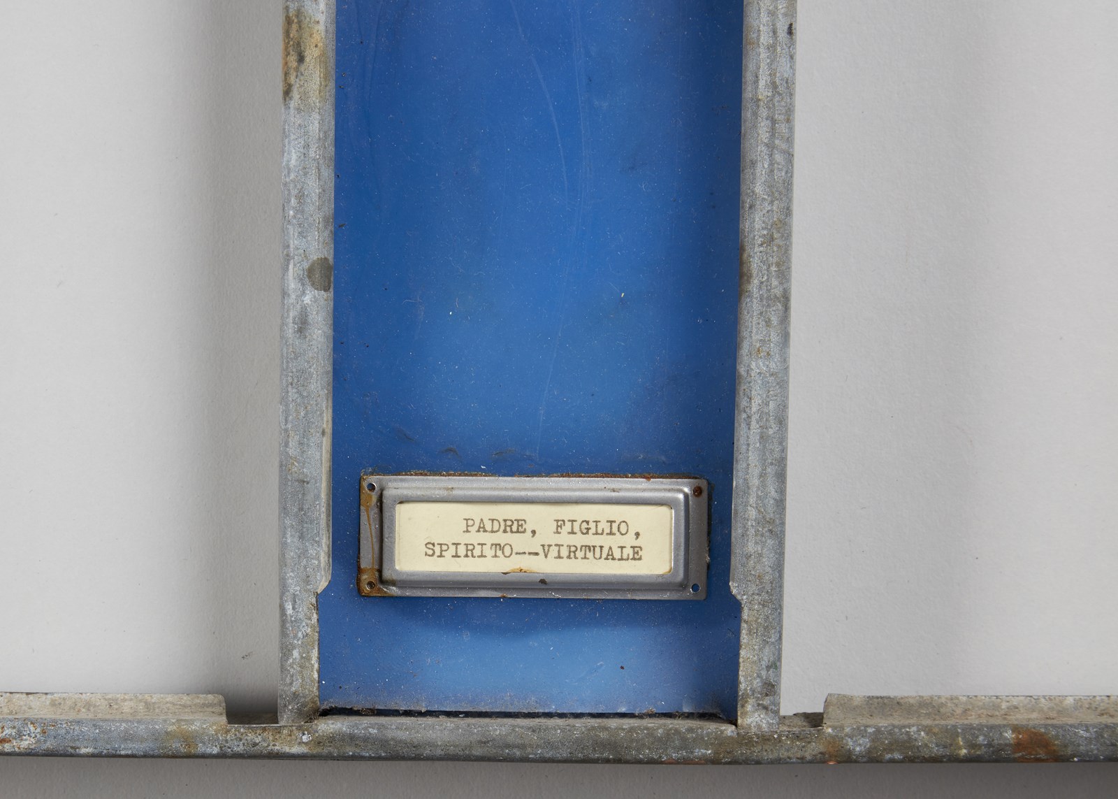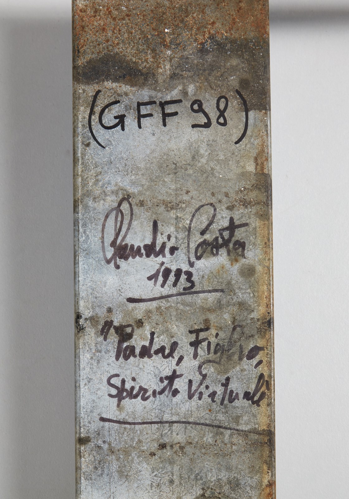 COSTA CLAUDIO (1942 - 1995) Padre, figlio, spirito.... virtuale. Scultura. Cm 50,00 x 98,00. Titolo in basso al centro. Provenienza: Collezione Franchini, Genova; Collezione privata, Genova. Opera in corso di archiviazione presso l'Archivio Claudio Costa. Difetti.