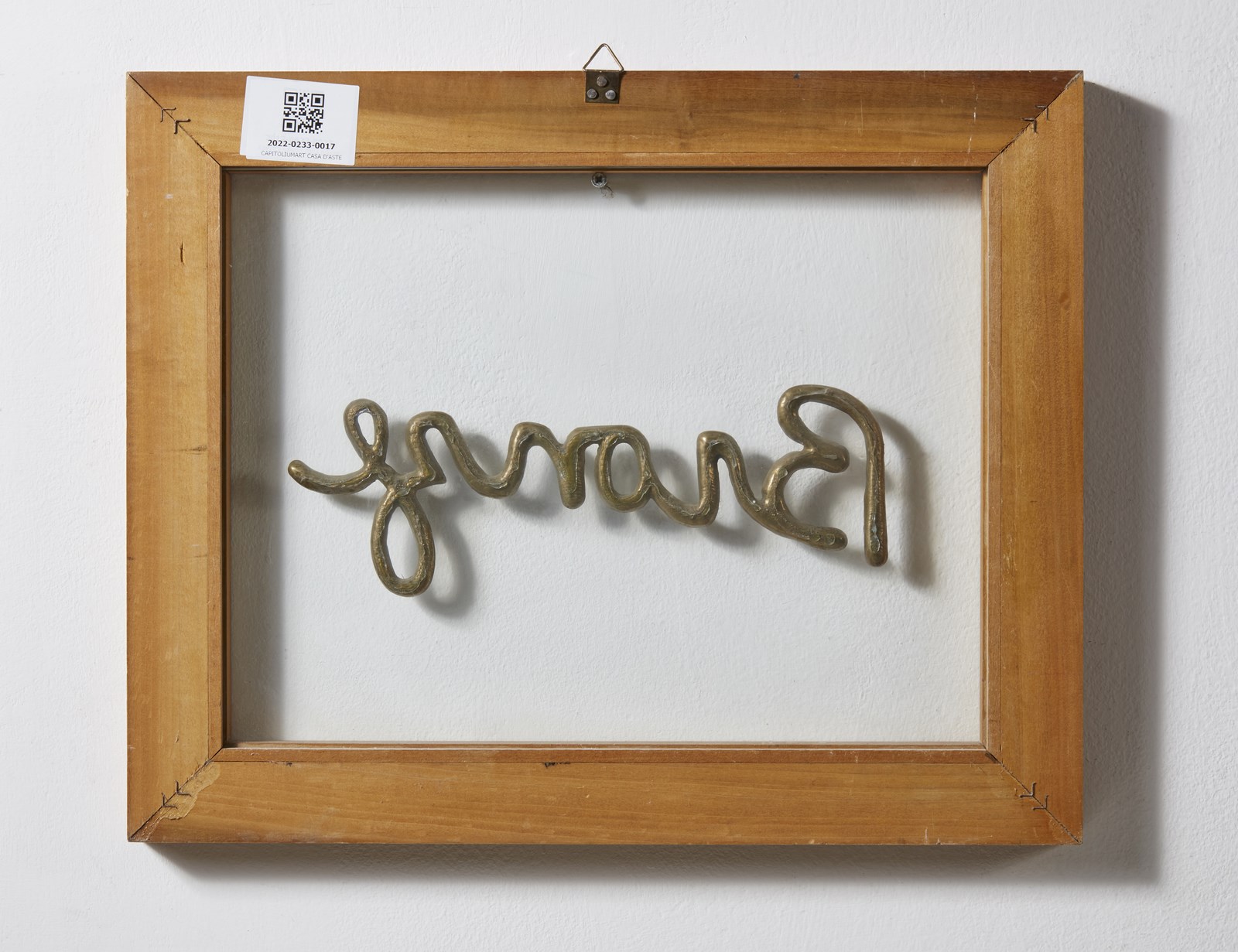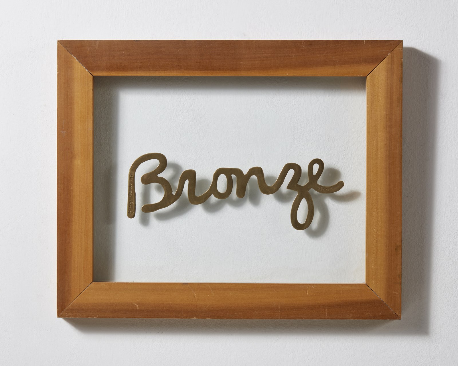 BRECHT GEORGE (1926 - 2008) Bronze. 1981. Bronzo. Cm 30,00 x 10,00. 68/100. Tiratura, firma e anno incise al retro. Dimensioni con cornice 37,5x47,5cm. Edizioni Francesco Conz. Edizione totale: 100 esemplari firmati e numerati. Lievi difetti. . Cornice presente