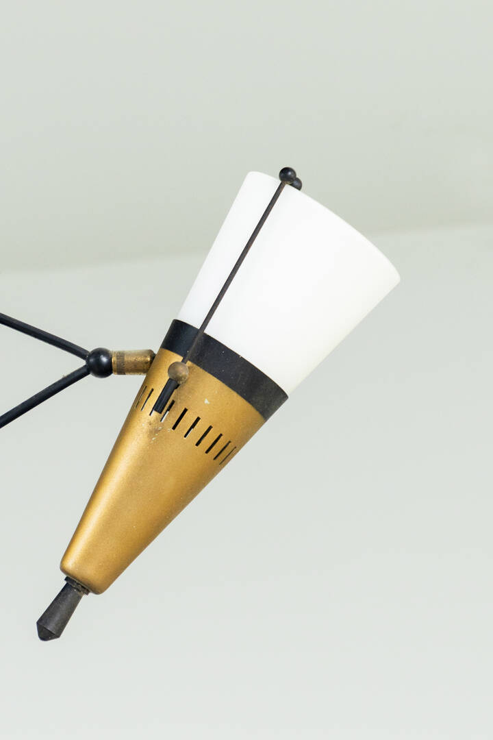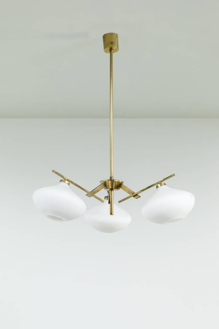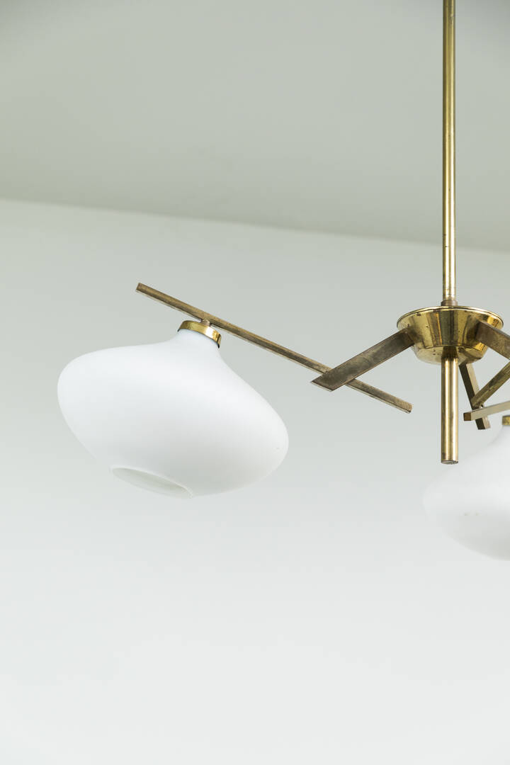 Precedente Lotto 48 Successivo Sant’Agostino - Corso Tassoni 56, 10144 Torino Asta 200 Illuminazione Sessione unica venerdì 8 aprile 2022 ore 16:00 (UTC +01:00) STILNOVO STILNOVOLampadario in ottone, diffusori in vetro satinato.Anni '50h cm 85