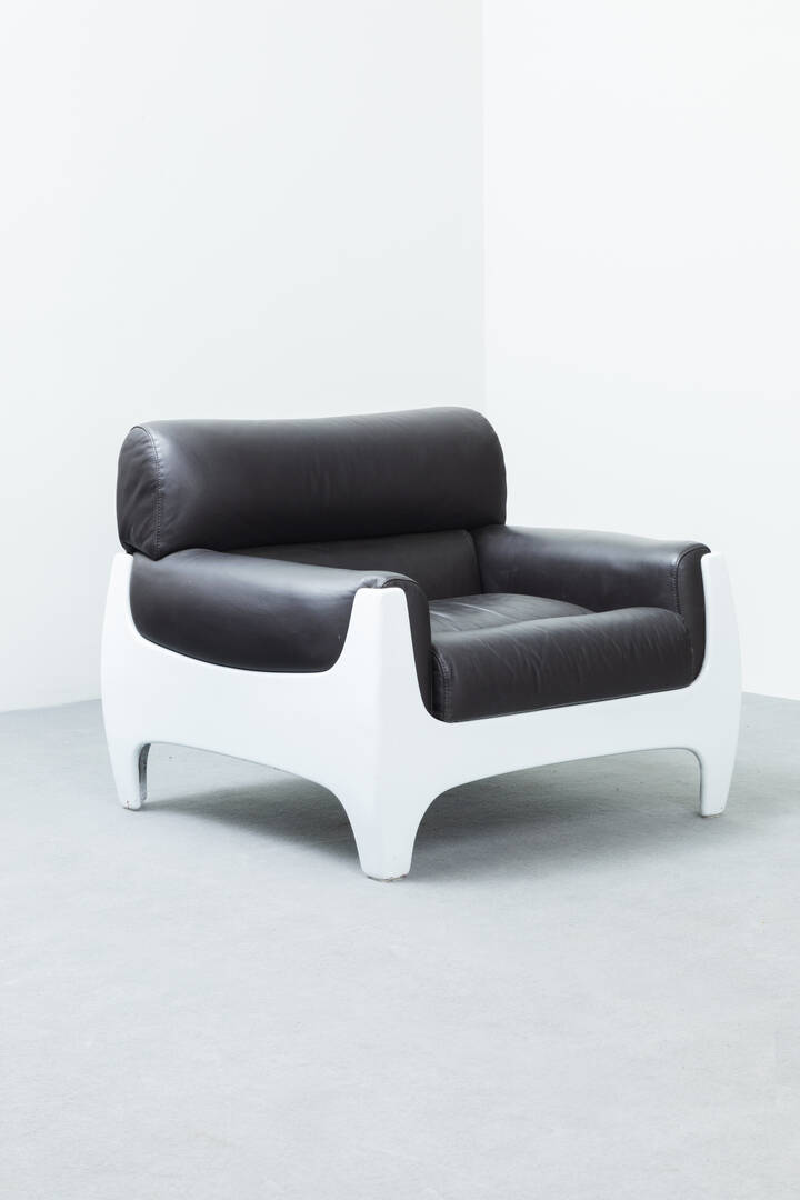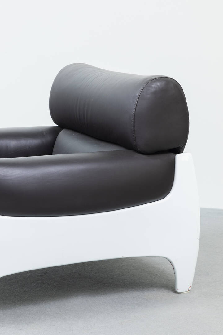 Struttura in fibra di vetro, cuscini imbottiti rivestiti in pelle.