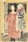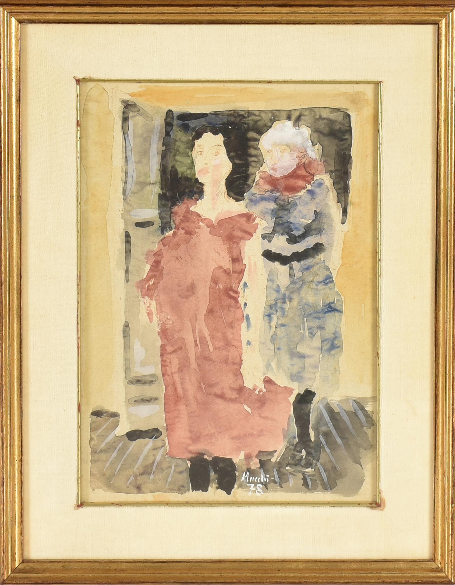 Gabriele Mucchi LA VECCHIA E LA GIOVANE acquarello su tela, cm 36x25 firma e...