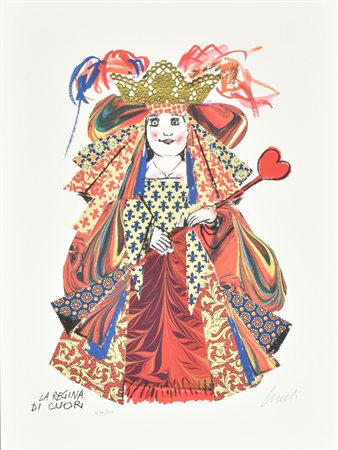 Emanuele Luzzati LA REGINA DI CUORI serigrafia su carta, cm 40x30; es....