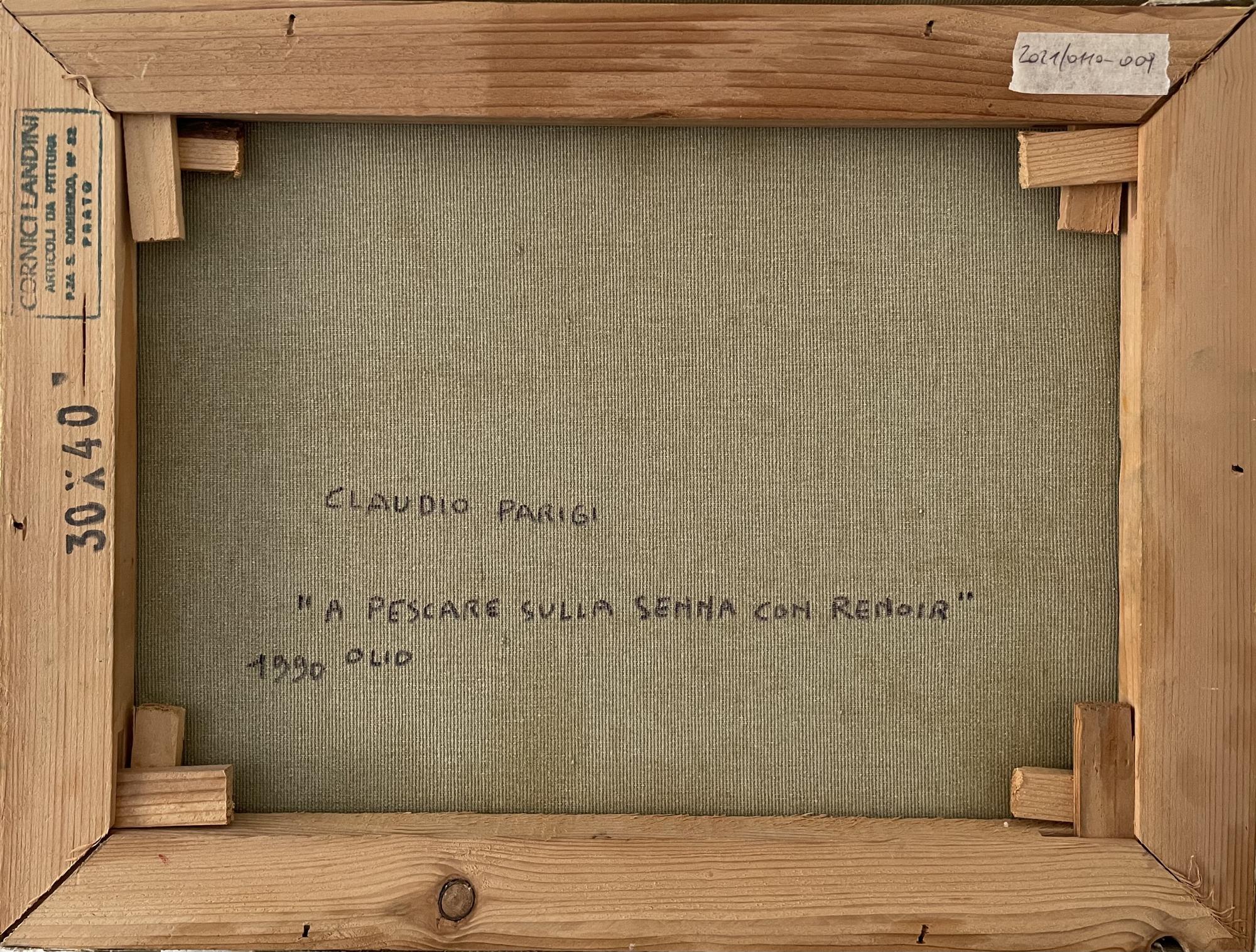 Claudio Parigi A PESCARE SULLA SENNA CON RENOIR olio su tela, cm 30x40 firma...