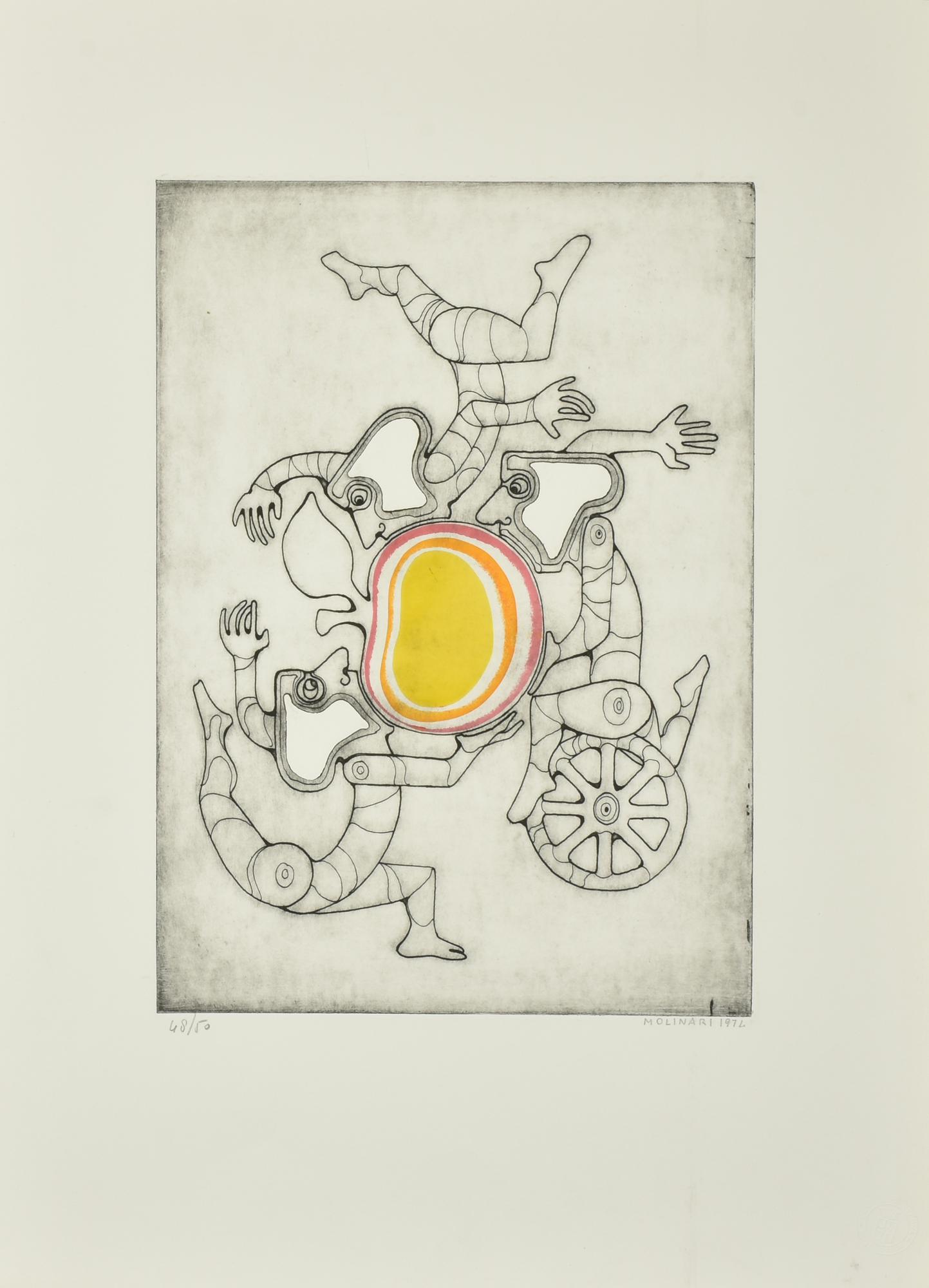 Mario Molinari COMPOSIZIONE incisione su carta colorata a mano, battuta cm...