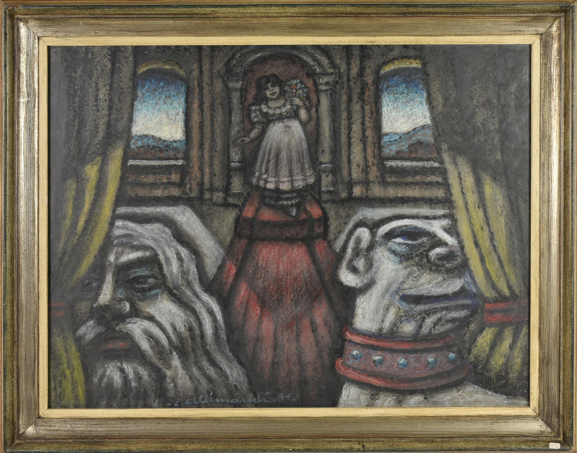 Enrico Allimandi LA REALTA' E IL MISTERO pastelli su carta, 63x49 cm firma e...