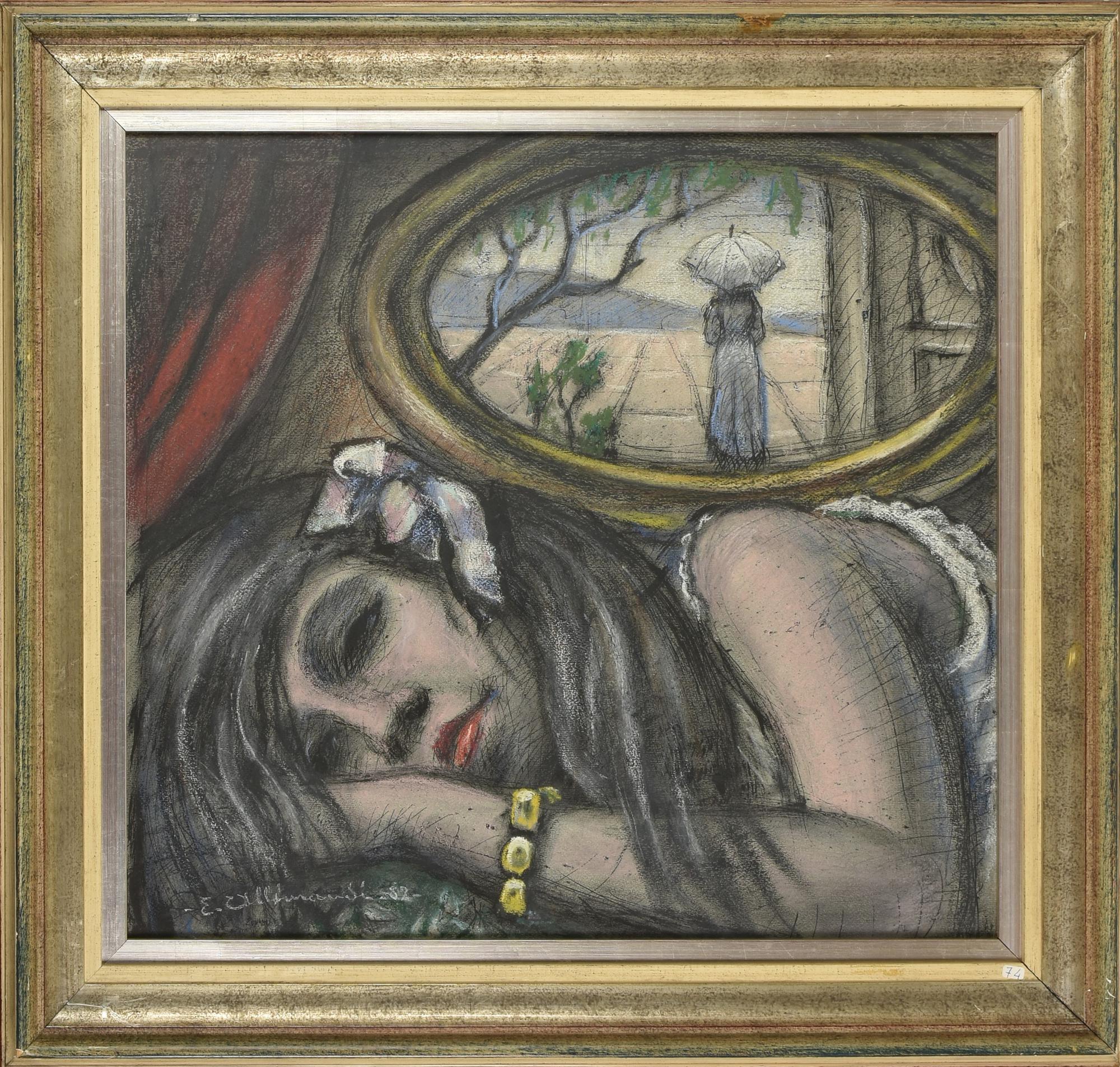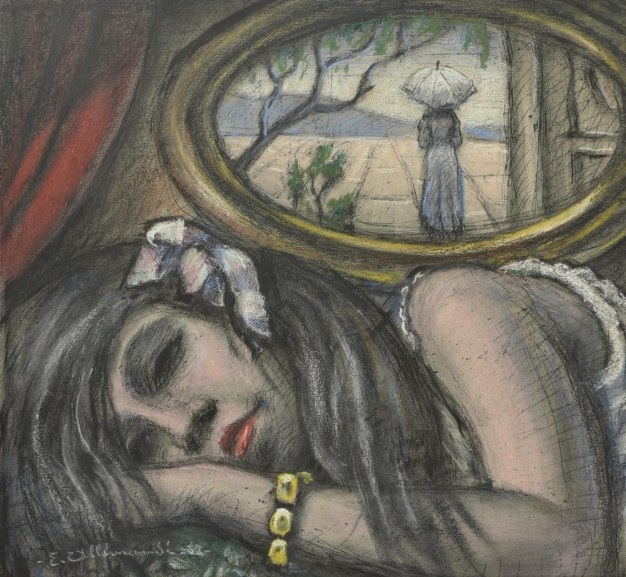 Enrico Allimandi SOGNO tecnica mista su cartoncino, 50x56 cm firma e data...