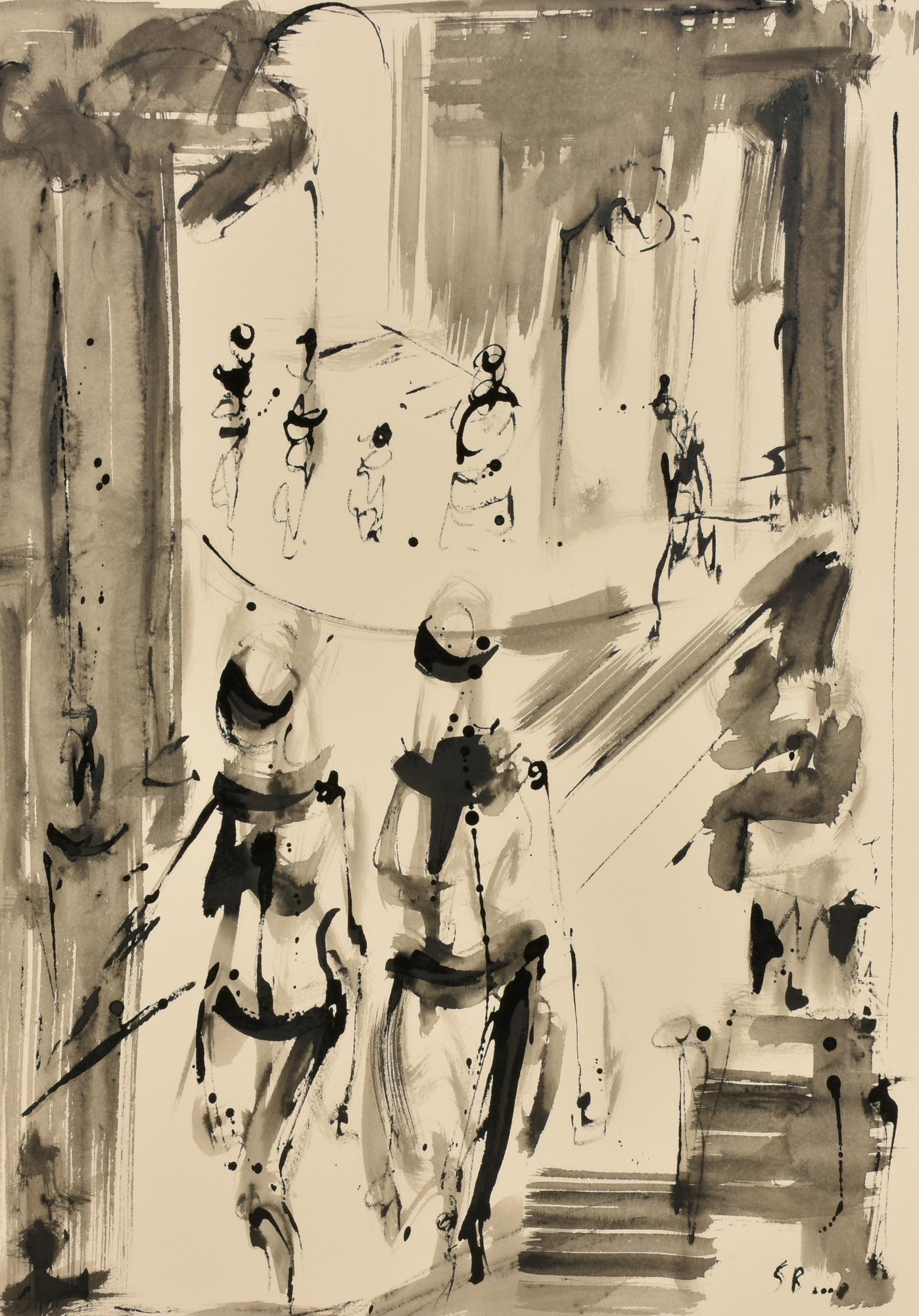 S. B. SENZA TITOLO tecnica mista su carta, cm 50x35 firma, data eseguita nel...